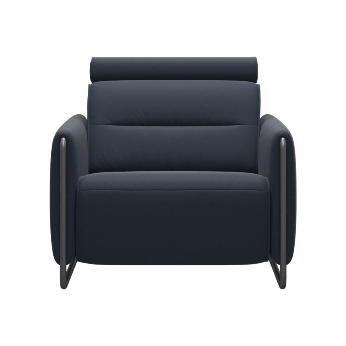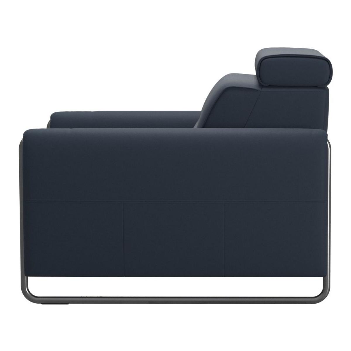 Supremely elegant and uniquely comfortable, the Stressless Emily embodies all the instantly recognisable hallmarks of the Stressless brand - innovative technology, clean lines, and a simple minimalist look, inspired by classic Scandinavian style. The Stressless Emily is fitted with soft, enveloping cushions, and all seat modules are available with an adjustable headrest, allowing it to provide the ultimate in comfort and relaxation Sleek lines with a modern look give Stressless Emily an embracing appearance. The contemporary design of the soft enveloping cushions invites you to sit down and relax. This Stressless Emily chair comes with a fixed back option. A reclining option where the sofa is fitted with motors for personal adjustment of back and leg support is also available here. You can also choose between either steel, wood, or wide arms. The Emily range from Stressless is available in a variety of leathers and fabrics.. Height: 87cm Width: 96cm Depth: 111cm Seat Height: 45cm Seat Depth: 58cm Emily Chair is displayed in Paloma Oxford Blue with Polished Arms All screens vary in colour reproduction and whilst every effort has been made to display the colour as accurately as possible it is for guidance only.