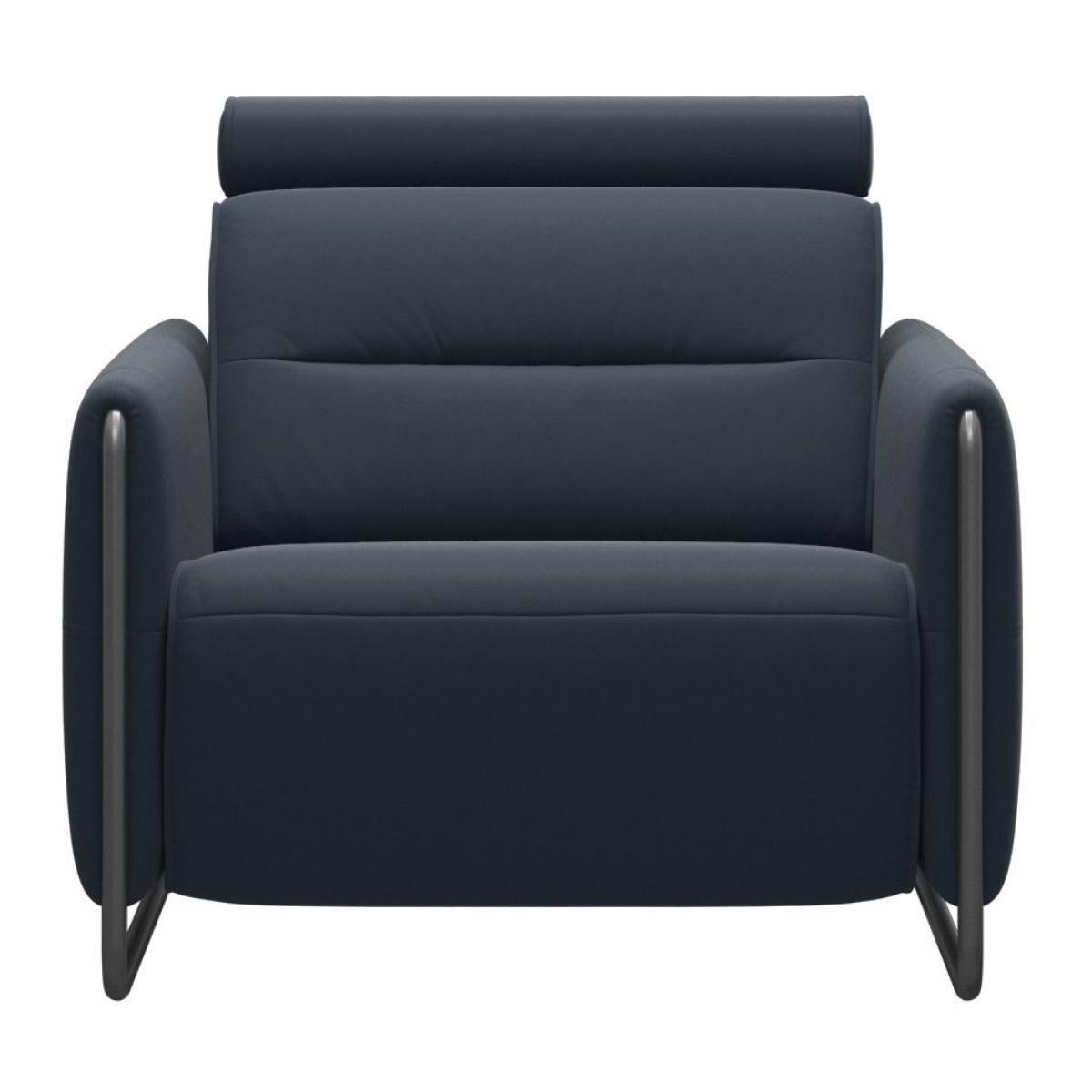 Supremely elegant and uniquely comfortable, the Stressless Emily embodies all the instantly recognisable hallmarks of the Stressless brand - innovative technology, clean lines, and a simple minimalist look, inspired by classic Scandinavian style. The Stressless Emily is fitted with soft, enveloping cushions, and all seat modules are available with an adjustable headrest, allowing it to provide the ultimate in comfort and relaxation Sleek lines with a modern look give Stressless Emily an embracing appearance. The contemporary design of the soft enveloping cushions invites you to sit down and relax. This Stressless Emily chair comes with a fixed back option. A reclining option where the sofa is fitted with motors for personal adjustment of back and leg support is also available here. You can also choose between either steel, wood, or wide arms. The Emily range from Stressless is available in a variety of leathers and fabrics.. Height: 87cm Width: 96cm Depth: 111cm Seat Height: 45cm Seat Depth: 58cm Emily Chair is displayed in Paloma Oxford Blue with Polished Arms All screens vary in colour reproduction and whilst every effort has been made to display the colour as accurately as possible it is for guidance only.