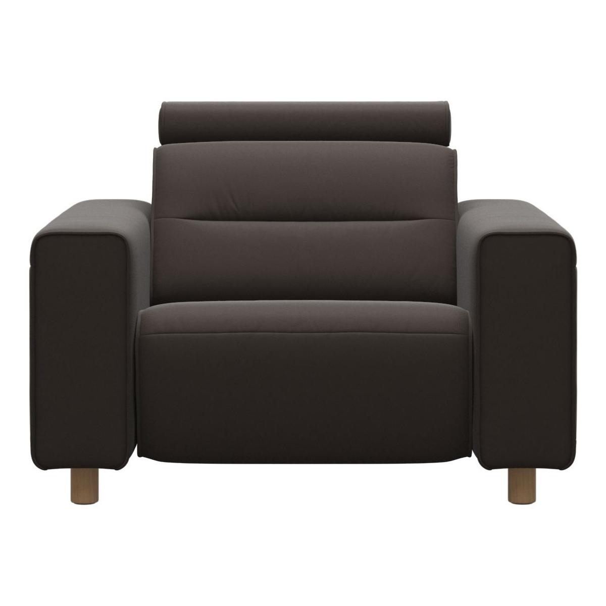 Supremely elegant and uniquely comfortable, the Stressless Emily embodies all the instantly recognisable hallmarks of the Stressless brand - innovative technology, clean lines, and a simple minimalist look, inspired by classic Scandinavian style. The Stressless Emily is fitted with soft, enveloping cushions, and all seat modules are available with an adjustable headrest, allowing it to provide the ultimate in comfort and relaxation Sleek lines with a modern look give Stressless Emily an embracing appearance. The contemporary design of the soft enveloping cushions invites you to sit down and relax. All seat modules come with an adjustable headrest. This Stressless Emily chair comes with a fixed back option. A reclining option where the sofa is fitted with motors for personal adjustment of back and leg support is also available here. You can also choose between either steel, wood, or wide arms. The Emily range from Stressless is available in a variety of leathers and fabrics.. Height: 87cm Width: 122cm Depth: 111cm Seat Height: 45cm Seat Depth: 58cm Image 1 displays the Emily Chair in Paloma Oxford Blue with Steel feet Image 2 displays the Emily Chair in Paloma Chestnut with Oak feet All screens vary in colour reproduction and whilst every effort has been made to display the colour as accurately as possible it is for guidance only.