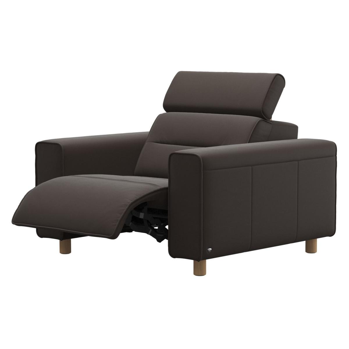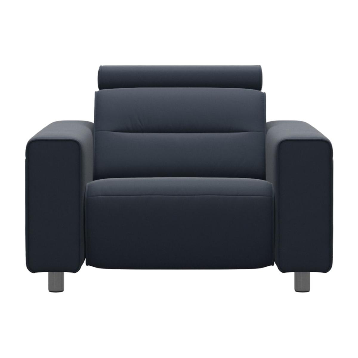 Supremely elegant and uniquely comfortable, the Stressless Emily Chair Power Recliner with Wide Arm embodies all the instantly recognisable hallmarks of the Stressless brand - innovative technology, clean lines, and a simple minimalist look, inspired by classic Scandinavian style. The Stressless Emily is fitted with soft, enveloping cushions, and all seat modules are available with an adjustable headrest, allowing it to provide the ultimate in comfort and relaxation Sleek lines with a modern look give Stressless Emily an embracing appearance. The contemporary design of the soft enveloping cushions invites you to sit down and relax. All seat modules come with an adjustable headrest. This Stressless Emily chair comes with a reclining option where the sofa is fitted with motors for personal adjustment of back and leg support. A fixed back option is also available here. You can also choose between either steel, wood, or wide arms. The Emily range from Stressless is available in a variety of leathers and fabrics. Height: 87cm Width: 122cm Depth: 111cm Seat Height: 45cm Seat Depth: 58cm The Stressless Emily Power Recliner Chair With Wide Arms is displayed in Paloma Oxford with Steel legs & Paloma Chestnut with Oak legs All screens vary in colour reproduction and whilst every effort has been made to display the colour as accurately as possible it is for guidance only.