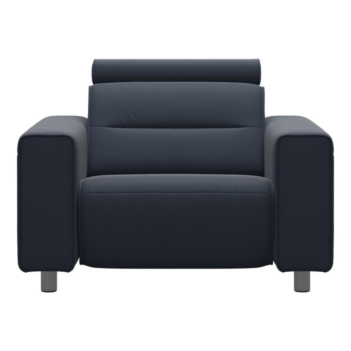 Supremely elegant and uniquely comfortable, the Stressless Emily Chair Power Recliner with Wide Arm embodies all the instantly recognisable hallmarks of the Stressless brand - innovative technology, clean lines, and a simple minimalist look, inspired by classic Scandinavian style. The Stressless Emily is fitted with soft, enveloping cushions, and all seat modules are available with an adjustable headrest, allowing it to provide the ultimate in comfort and relaxation Sleek lines with a modern look give Stressless Emily an embracing appearance. The contemporary design of the soft enveloping cushions invites you to sit down and relax. All seat modules come with an adjustable headrest. This Stressless Emily chair comes with a reclining option where the sofa is fitted with motors for personal adjustment of back and leg support. A fixed back option is also available here. You can also choose between either steel, wood, or wide arms. The Emily range from Stressless is available in a variety of leathers and fabrics. Height: 87cm Width: 122cm Depth: 111cm Seat Height: 45cm Seat Depth: 58cm The Stressless Emily Power Recliner Chair With Wide Arms is displayed in Paloma Oxford with Steel legs & Paloma Chestnut with Oak legs All screens vary in colour reproduction and whilst every effort has been made to display the colour as accurately as possible it is for guidance only.