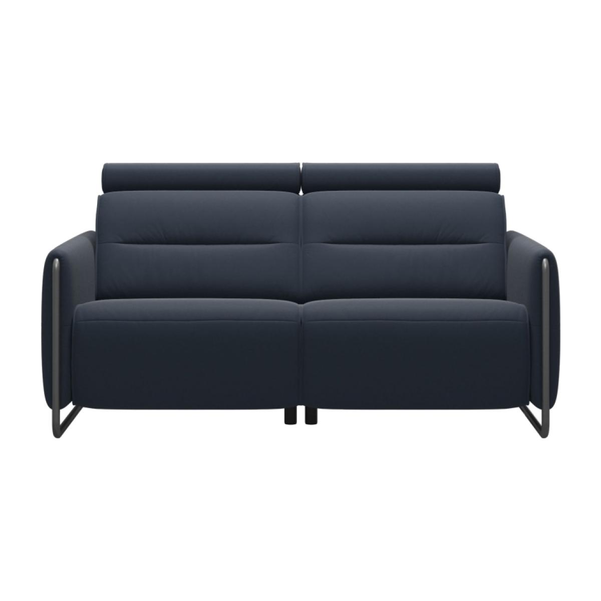 Sleek lines with a modern look give the Stressless Emily Sofa With Steel Arm an embracing appearance. The contemporary design of the soft enveloping cushions invites you to sit down and relax. All seat modules come with an adjustable headrest. This Stressless Emily sofa comes with fixed-seat backs. A reclining option where the sofa is fitted with motors for personal adjustment of back and leg support is also available. You can also choose between either steel, wood, or wide arms. The Emily range from Stressless is available in a variety of leathers and fabrics. 2 Seater Dimensions Height: 87cm Width: 172cm Depth: 111cm Seat Height: 45cm Seat Depth: 58cm Stressless Emily sofa is displayed with Paloma Oxford Leather with Steel Arms All screens vary in colour reproduction and whilst every effort has been made to display the colour as accurately as possible it is for guidance only.