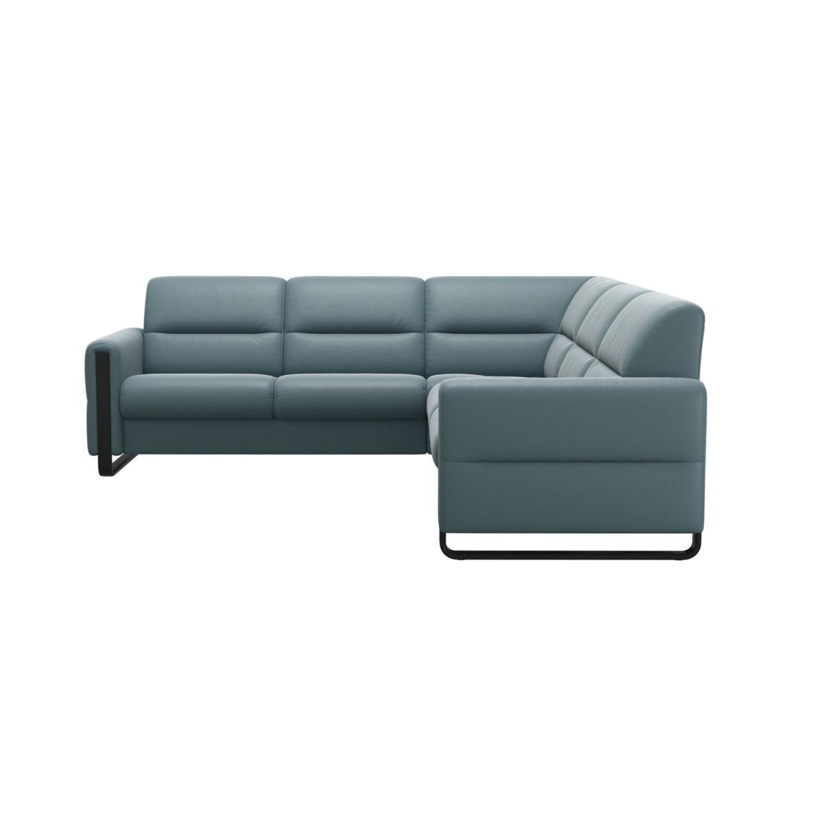 The Stressless® Fiona Corner Sofa offers a modern and clean design with neat proportions. Classic in its beautiful simple lines, the sloping back features fine horizontally stitched detail for a truly unique look. Stressless® have mastered the science within the sofa and cushion design to ensure the upholstery retains its elegant and neat silhouette. Careful thought has been put into construction, angles and cushioning to provide exquisite comfort. The seat cushions have Comfort. Zones™ to enhance the softness and make the cushions adapt to your seating position. Customise this beautiful 4.5 seater sofa with the large selection of leather colour choices, wood options, and metal finishes. The different arm and base options will allow you to create a lounge to your interior design taste, and will make your sofa truly feel like your own.