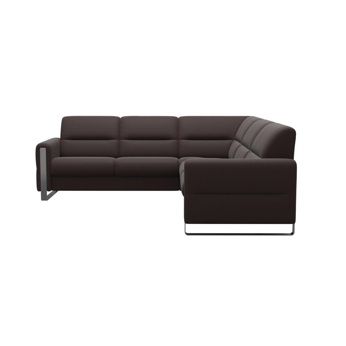 The Stressless® Fiona Corner Sofa offers a modern and clean design with neat proportions. Classic in its beautiful simple lines, the sloping back features fine horizontally stitched detail for a truly unique look. Stressless® have mastered the science within the sofa and cushion design to ensure the upholstery retains its elegant and neat silhouette. Careful thought has been put into construction, angles and cushioning to provide exquisite comfort. The seat cushions have Comfort. Zones™ to enhance the softness and make the cushions adapt to your seating position. Customise this beautiful 4.5 seater sofa with the large selection of leather colour choices, wood options, and metal finishes. The different arm and base options will allow you to create a lounge to your interior design taste, and will make your sofa truly feel like your own.