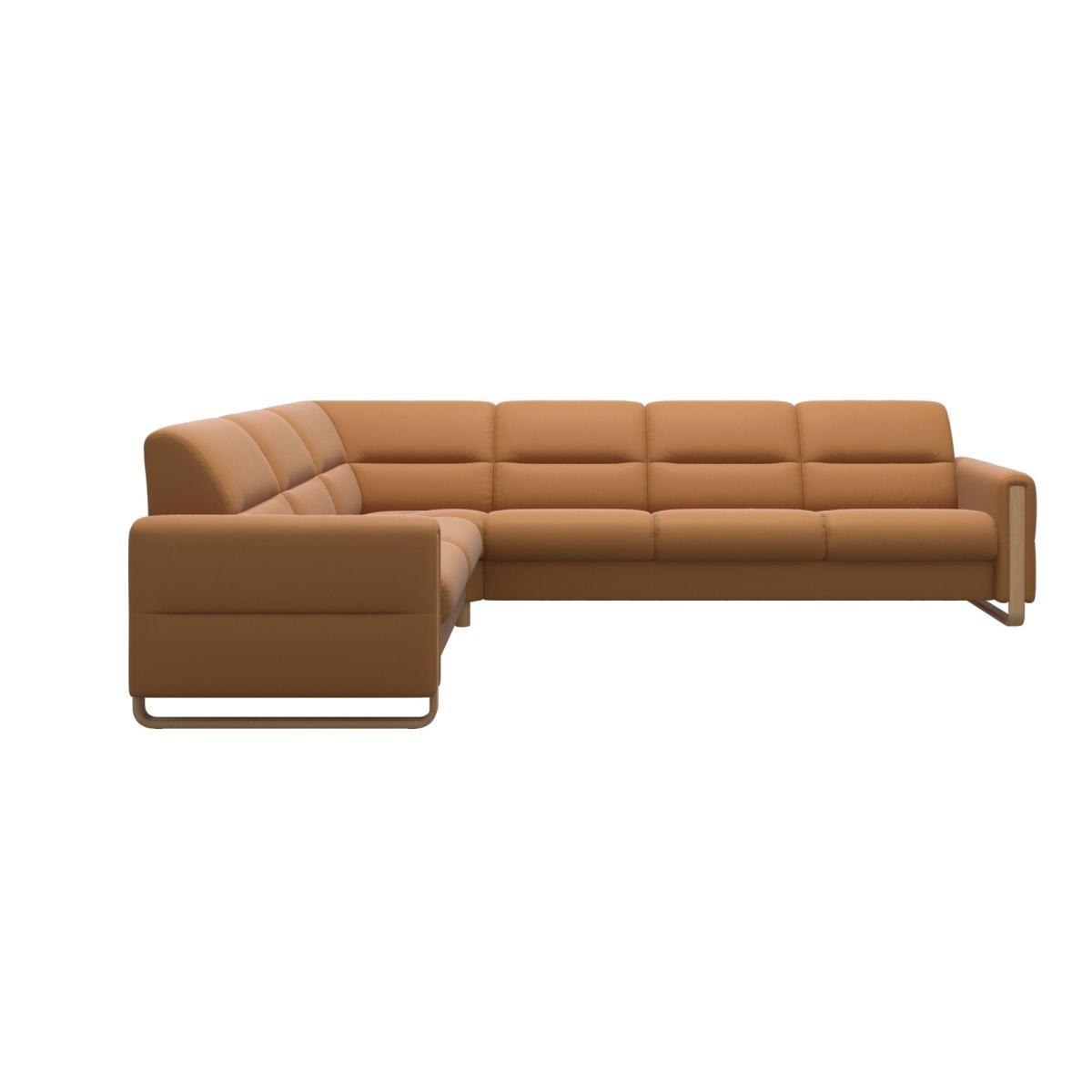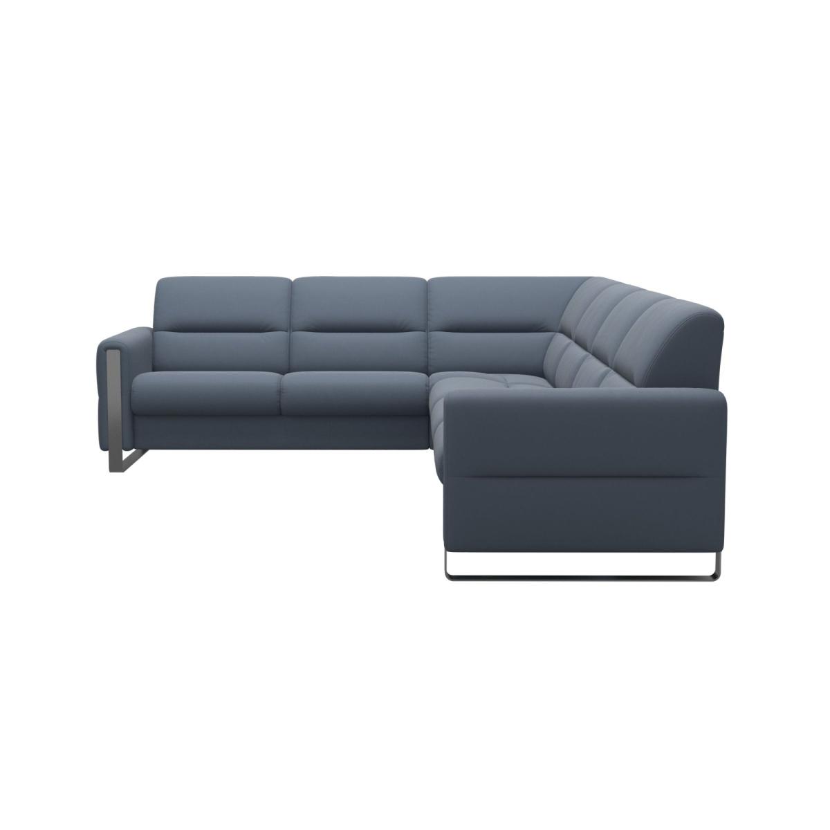 The Stressless® Fiona Corner Sofa offers a modern and clean design with neat proportions. Classic in its beautiful simple lines, the sloping back features fine horizontally stitched detail for a truly unique look. Stressless® have mastered the science within the sofa and cushion design to ensure the upholstery retains its elegant and neat silhouette. Careful thought has been put into construction, angles and cushioning to provide exquisite comfort. The seat cushions have Comfort. Zones™ to enhance the softness and make the cushions adapt to your seating position. Customise this beautiful 5 seater sofa with the large selection of leather colour choices, wood options, and metal finishes. The different arm and base options will allow you to create a lounge to your interior design taste, and will make your sofa truly feel like your own.