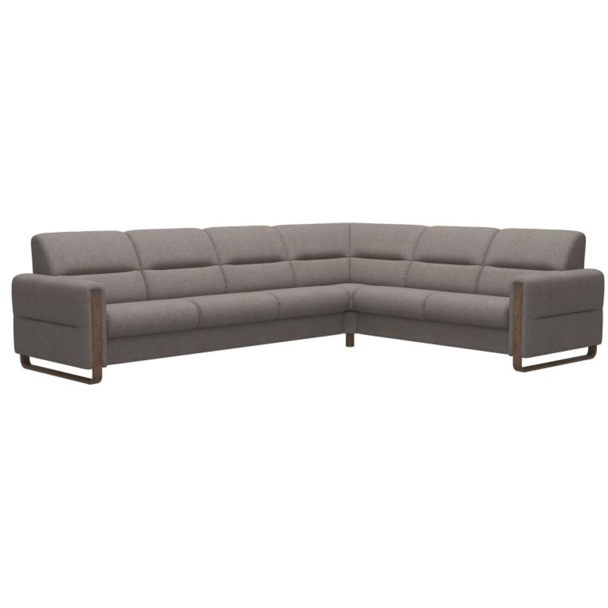 Please note: Images may be shown in Leather and Fabric, these are for illustration purposes only. Enhance your living space with the Stressless Fiona Fabric 6 Seater Corner Sofa, designed in a spacious 2 + 3 seat configuration to bring style, functionality, and unrivaled comfort into larger lounges or open-plan areas. Upholstered in premium fabric with a soft, inviting texture, Fiona combines Scandinavian elegance with a modular layout that maximizes both space and relaxation. Its clean lines, slim armrests, and low profile bring a sense of openness, while Stressless’ renowned ergonomic design ensures lasting support for every guest. Whether you're gathering with family or enjoying a peaceful night in, Fiona provides room to stretch out—and a reason to stay seated. Timeless, tailored, and effortlessly comfortable, this is corner seating that does more than just fit the room—it elevates it. Features: Designed to accommodate families and entertainers alike, offering deep, generous seating across two sections. Available in a wide selection of textures and colors for a personalized, high-end finish. Clean and modern profile with sleek proportions and subtle detailing for understated sophistication. Expertly engineered to follow the natural curves of your body for long-lasting comfort and posture support. Durable, high-resilience cushioning that retains its shape and plushness over time. Customizable setup allows for mirrored layouts or future expansion within the Fiona collection. Legs and frames are available in various wood and metal options to suit your interior. Built using responsibly sourced materials with Stressless’ commitment to quality and eco-conscious design. Dimensions: Height: 82cm Length: 235cm Width Max: 301cm Seat Height:45cm Seat Depth:55cm All screens vary in colour reproduction and whilst every effort has been made to display the colour as accurately as possible it is for guidance only.