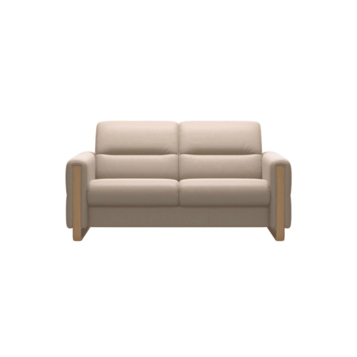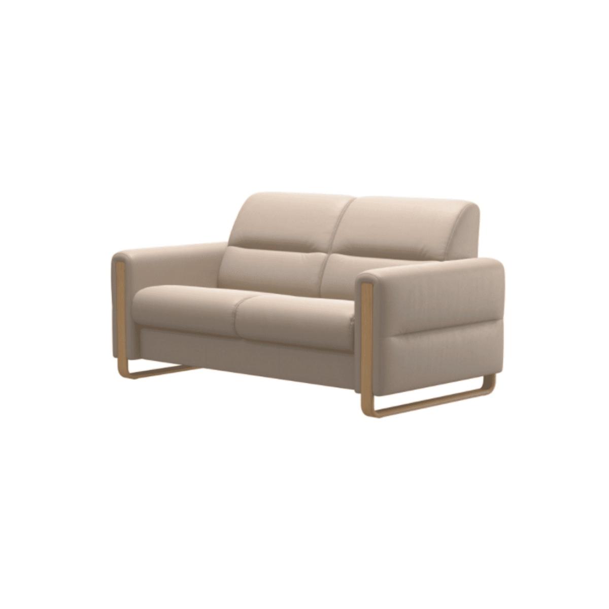 Please note: Images may be shown in Leather and Fabric, these are for illustration purposes only. Discover refined comfort with the Stressless Fiona 2 Seater Leather Sofa, where sleek Scandinavian design meets uncompromising craftsmanship. Wrapped in supple top-grain leather, Fiona offers a tailored look with clean lines, slim armrests, and a gently supportive seat that invites you to unwind in style. Engineered with the signature Stressless comfort system, every detail—from the subtly angled backrest to the perfectly cushioned seating—works in harmony to deliver ergonomic support that adapts to your body. Whether you’re entertaining or simply enjoying a quiet moment, the Fiona delivers a modern aesthetic with timeless appeal. Choose from a range of luxurious leather finishes and solid wood base options to make Fiona an effortless fit for your living space. Minimalist in design, maximum in comfort—this is relaxation, elevated. Features; Upholstered in high-quality, top-grain leather for a soft, durable, and luxurious finish. Designed with Stressless' renowned comfort system for optimal body support and long-term seating comfort High-resilience foam retains shape over time and provides lasting support and softness. Subtly contoured armrests and angled backrest enhance posture and lounging comfort. Ideal for smaller spaces without compromising on comfort or seating depth. Crafted with a solid wood frame and quality joinery for strength and longevity. Dimensions: Height: 81cm Width: 165cm Depth: 89cm Seat Height:45cm Seat Depth:55cm All screens vary in colour reproduction and whilst every effort has been made to display the colour as accurately as possible it is for guidance only.