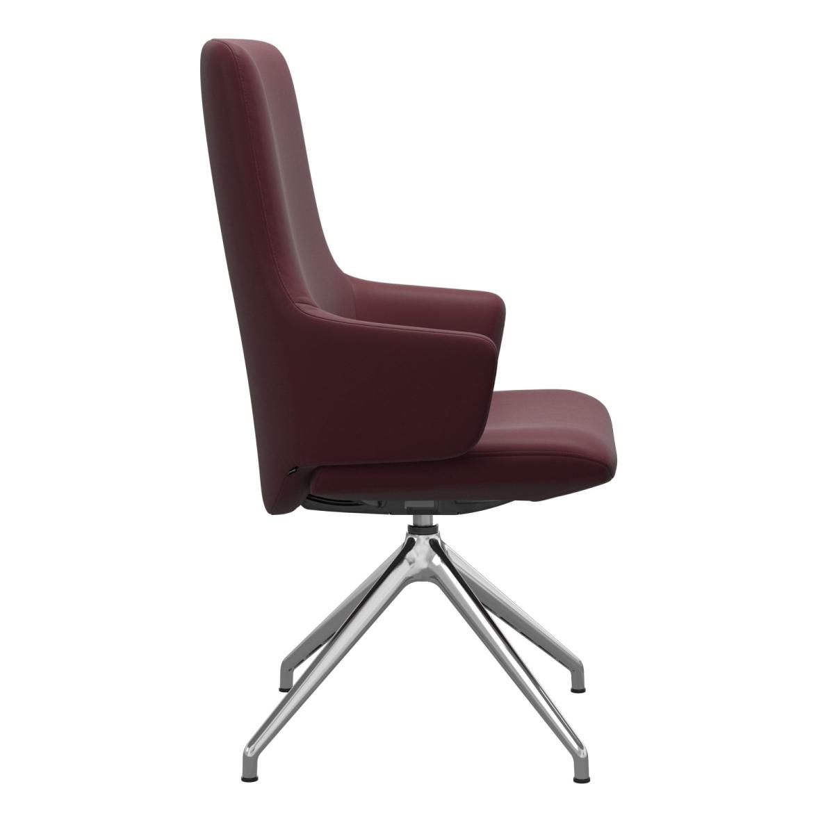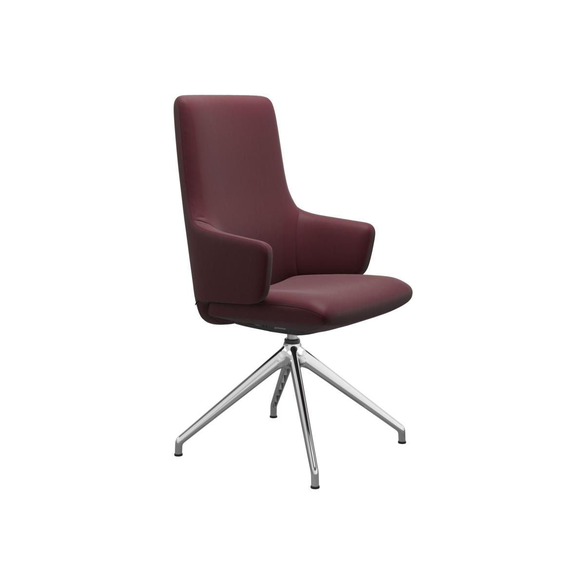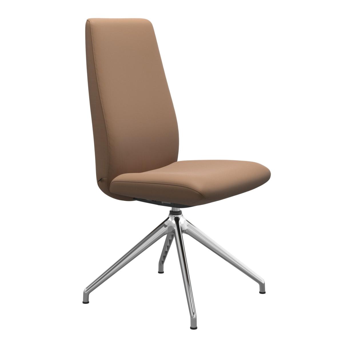 The Stressless Laurel High Back Dining Chair will add some flavour to your dining area. With clean lines and Scandi design, the Laurel brings the world renowned Stressless comfort to the dining table. The unique BalanceAdapt system, combined with the Glide system, makes the chair move with your body. Choose your leather grade and colour as well as your metal finish, and decide whether to opt for arms on your cross base chair for full customisation of your dining room.
