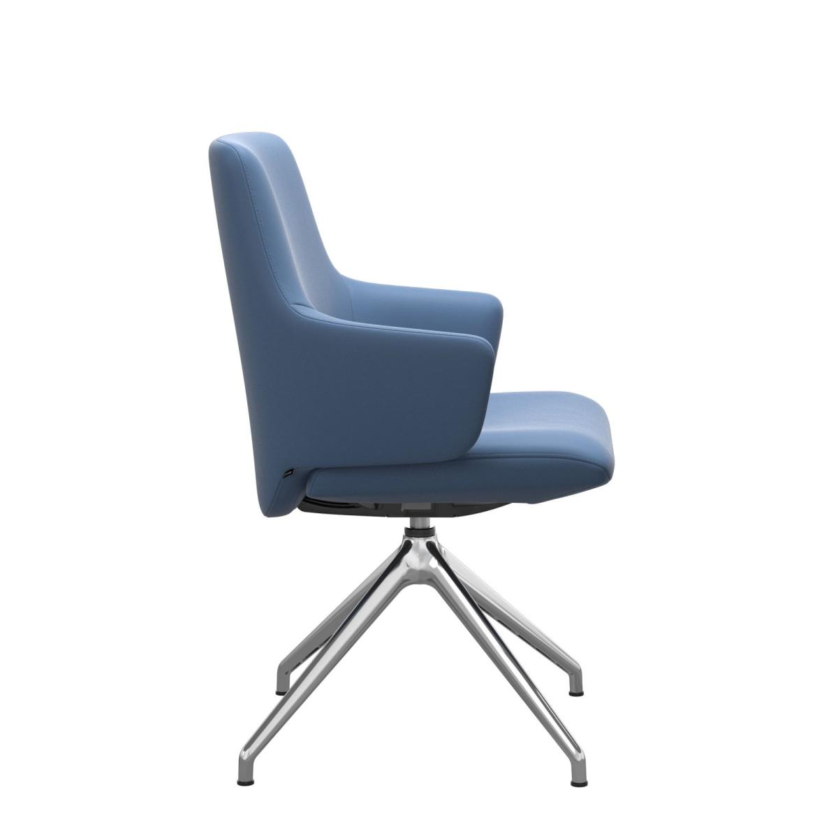 The Stressless Laurel Low Back Dining Chair will add some flavour to your dining area. With clean lines and Scandi design, the Laurel brings the world renowned Stressless comfort to the dining table. The unique BalanceAdapt system, combined with the Glide system, makes the chair move with your body. Choose your leather grade and colour as well as your metal finish, and decide whether to opt for arms on your cross base chair for full customisation of your dining room.