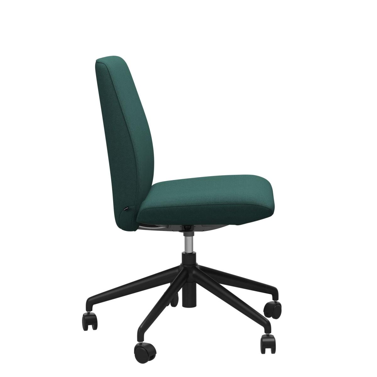 The Stressless® Laurel Office Chair has a light design that will blend in with any style. The seat and back follow your movements and offer good support, giving you the possibility to effortlessly shift position during the day.. Lean back, and the backrest will recline while the seat moves forward in a coordinated movement. A discrete flexibility in the seat offers good support and reduces the pressure on your lower thighs as you lean forward. Offering a high level of versatility, the wheels on the base make it easy to move around, and there is a lever under the seat that allows you to adjust the seat height by up to 12 centimetres, while the large choice of upholstery makes it easy to customise and match with the rest of your interior.