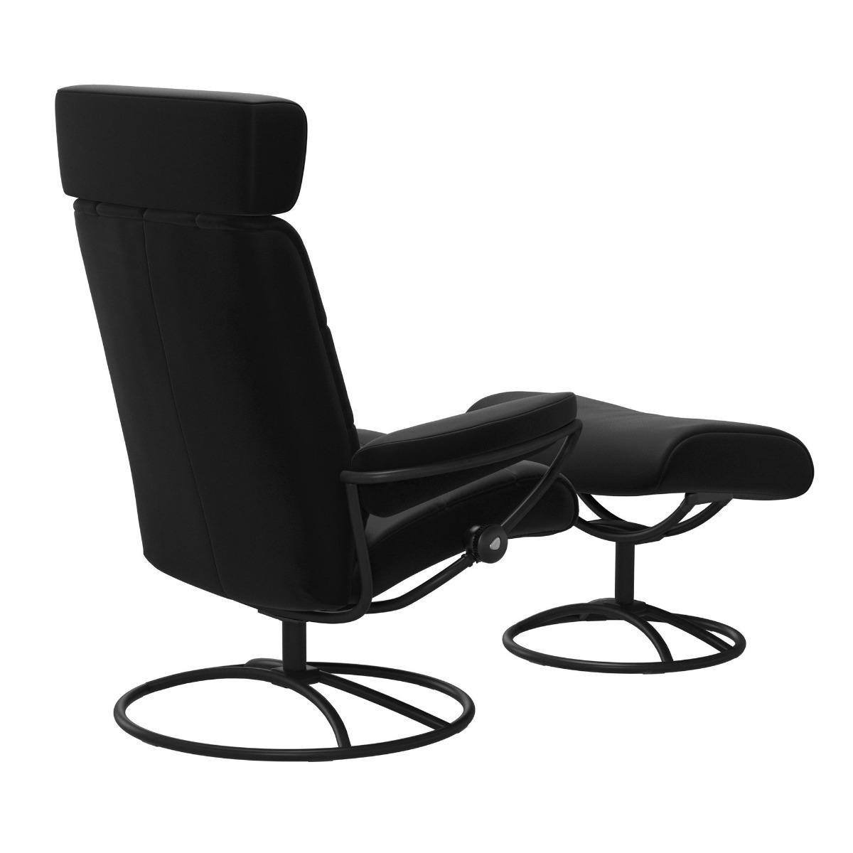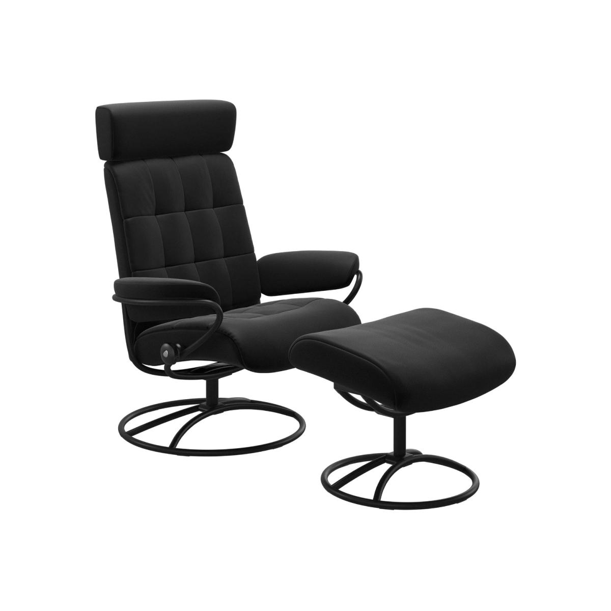 Inspired by the 60s, The Stressless London Original High Back Chair and Stool, Matt Black is an absolute classic. With soft fibre cushioning wrapped in a luxurious matt black leather, this recliner not only brings a sophisticated, stylish look into your living space, but provides extreme comfort with all the Stressless functionalities. Featuring the stunning matching stool, give your feet some well-deserved rest.