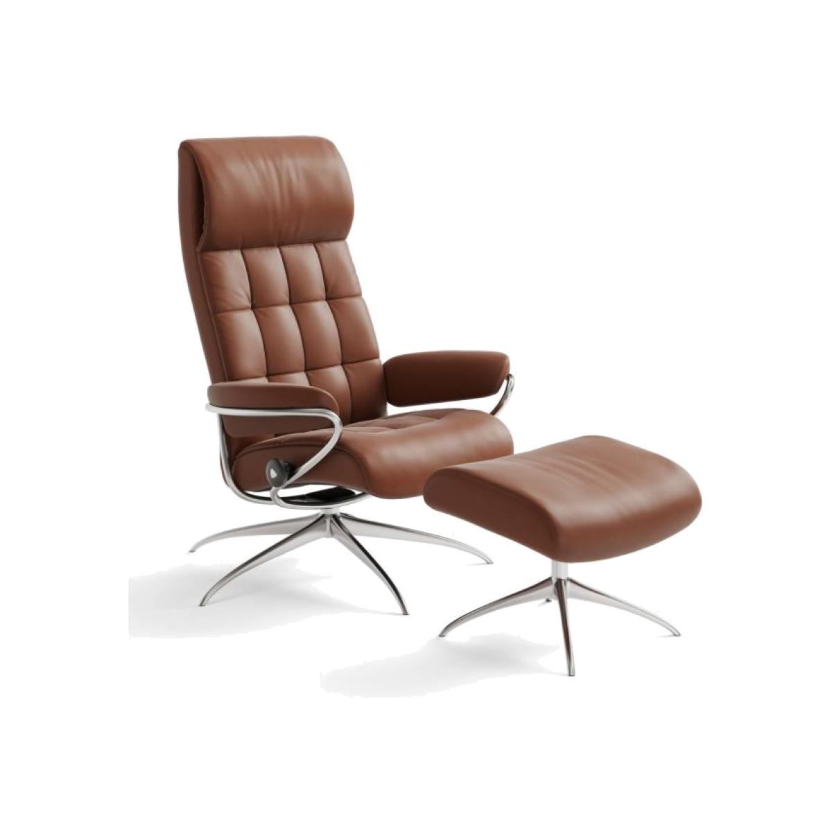 A design inspired by the swinging 60's sets the Stressless London apart from the recliner crowd. But that doesn't mean we've sacrificed any of the Stressless comfort you've come to expect - it just gives it a slight edge. On the inside, we've packed it with features to ensure that you find optimal relaxation. Choose between high and low back models, and our rotating Star and Office bases. Resting on a sleek and stylish aluminium base complete with BalanceAdapt™ the seat angle adjusts automatically to the slightest body movement to restore perfect balance. Furthermore, the BalanceAdapt™ tilt function allows you to sink back further into the chair increasing your comfort in all positions. W 80cm x H 111cm x D 71cm. Seat Height 43cm. Flexo springs on a steel frame ensure durable construction and strength Perforated Foam Molded Directly over Frame with a Soft Polyurethane Foam Pad on Top and then Covered by a Layer of Super-Soft Polyester Fiber 10 year guarantee against fabrication faults on internal mechanism for total piece of mind