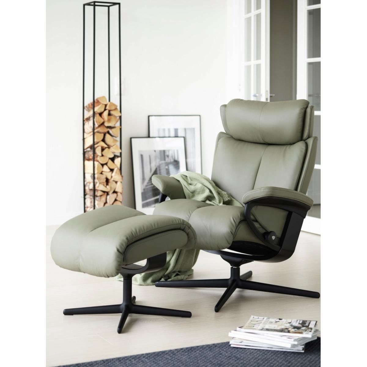 Please Note that this product does NOT come with the footstool included The Stressless Magic Chair is crafted using only the very finest materials, and is sure to bring supreme comfort to your living room. The Stressless Magic Chair is available in three sizes, so you can choose the right one for your body type. Stressless® Plus™ something other recliner chairs don't have, it's the ability to keep your eye line secure as you recline which has benefits for long term neck support. Stressless® glide system You won't boost upright at any given moment nor will you struggle to get into a reclined position. It is the ideal automatic seat-setting function. Sleep Function take five or maybe even more once you realise the handy sleeping function that lays the headrest flat so it becomes perfectly comfortable for a nap. Swivel the base allows for a complete 360 rotation, allowing you to adjust your direction with ease. Footstool not included Small w/Cross Base: h:101.0-111.0cm d:76.0cm w:78.0cm (Seat Height: 45.0cm) Medium w/Cross Base: h:102.0-112.0cm d:78.0cm w:82.0cm (Seat Height: 45.0cm) Large w/Cross Base: h:102.0-112.0cm d:84.0cm w:91.0cm (Seat Height: 47.0cm) Stressless® Plus™ system 10 Year Guarantee on fabrication faults on internal mechanism Patented Stressless Glide® and Plus® systems respond to the movement of your body