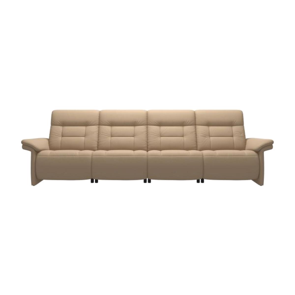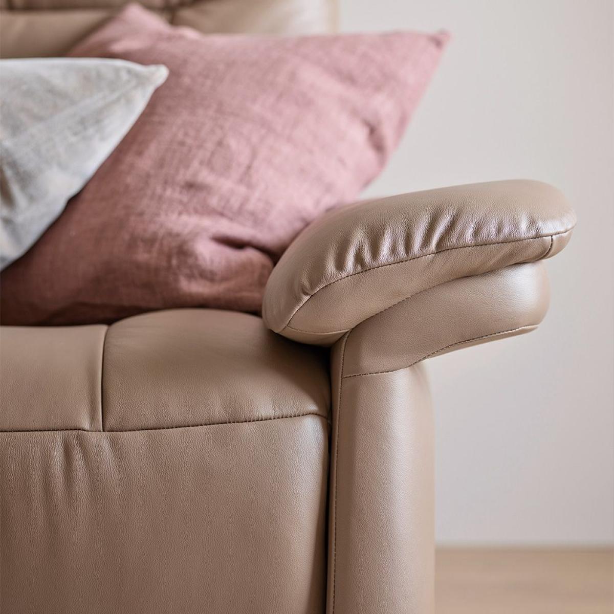 With its gentle curves and generous look, the Stressless Mary sofa is designed and built for a lifetime of comfort. Its cushioning is extra supple and comfortable, offering a soft landing after a hard day. All seat modules can be delivered with motorized adjustment of back and leg support. Stressless Mary matches exquisitely with our Stressless Mayfair recliner, which has been one of our best-selling designs through the decades. Choose between a classic upholstered armrest or an armrest with wooden details for an elegant touch.Dimensions: W344cm x H102cm x D99cm, Seat Height: 46cm, Seat Depth: 59cm, Depth fully extended: 173cmOther colours availableSwatch available upon requestStressless Leather TypesPaloma Leather - Paloma is a slightly corrected leather with a combination of dyes and pigments that smoothes some of the leathers structure grain pattern. However, the grain structure of Paloma may vary slightly at some parts of the furniture, and minor colour nuances may also occur. Natural marks, scars and insect bites remain and will appear in Paloma. A thin coat of lacquer gives Paloma some protection and simplifies cleaning, but Paloma does not have the same heavy-duty quality and protection as Batick and Cori. Due to its soft, natural and comfortable expression, Paloma is a very popular choice.Cori Leather - Cori is a corrected, pigment-improved and grain-embossed upholstery leather. Cori has substantial body and a distinct pebbled grain. Most of its natural marks are removed. Cori has a tip-shine, which adds depth and character to the surface. Some colours feature a two-tone tone-on-tone effect. A protective layer of lacquer simplifies cleaning. Cori is a wise choice if you want a leather with excellent utilisation properties, a robust structure and an exclusive look.Batick Leather - Batick is a corrected, pigment-improved and grain-embossed upholstery leather, which has had most of its natural marks removed. Batick may have a two-tone colour effect to liven up the surface. Batick is resistant to fading, although changes in colour will occur over time with use and exposure to light. A protective layer of lacquer simplifies cleaning. Simple cleaning, excellent utilisation properties and a favourable price make Batick a good choice.Noblesse Leather - Noblesse is the most exclusive quality leather offered by Stressless. A full grain semi-aniline, it is dyed all the way through and has only a thin protective topcoat. This enables the leather to retain the natural softness and lustre that characterises a first-class furniture leather. A natural material like Noblesse retains its original grain and structure. Minor colour nuances and skin blemishes may also occur. Such individual details may lead to slight variations at different parts of the furniture. Although the topcoat provides a certain level of protection, Noblesse is the most delicate of the leathers used by Ekornes. It absorbs moisture easily, and is more vulnerable to wear and tear, heat, sunlight, spills and perspiration. Regular maintenance is important to maintain its attractive appearance.Pioneer Leather - Pioneer is a luxurious full grain aniline pull-up leather. This exclusive and delicate quality retains the full original grain of the leather, and is treated with oils, waxes and transparent dyes. This enhances the soft touch and natural appeal, offering deep, vibrant colors and a beautiful luster. The full-bodied leather sensation and natural transparent look will gain patina and become even more beautiful with age. On an exclusive leather like Pioneer you will find natural characteristics like color nuances, difference in structure, marks and skin blemishes. The delicate finish gives an exceptional comfort and a striking look, but offers just a light protection. Pioneer absorbs moisture easily and is vulnerable to heat, sunlight, spills and perspiration. Regular care and precautions are important to keep the luxurious and elegant appearance.