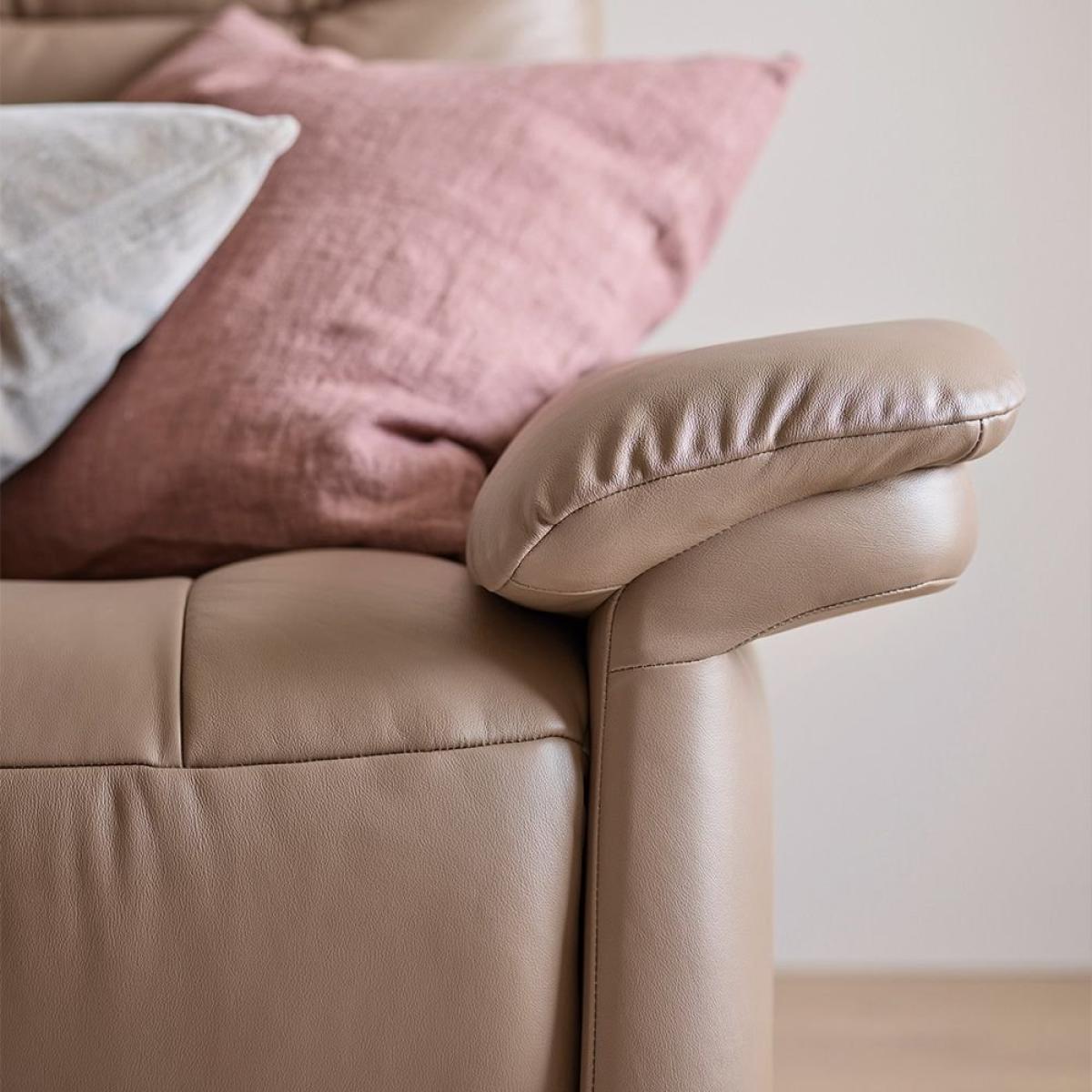 With its gentle curves and generous look, the Stressless Mary sofa is designed and built for a lifetime of comfort. Its cushioning is extra supple and comfortable, offering a soft landing after a hard day. All seat modules can be delivered with motorized adjustment of back and leg support. Stressless Mary matches exquisitely with our Stressless Mayfair recliner, which has been one of our best-selling designs through the decades. Choose between a classic upholstered armrest or an armrest with wooden details for an elegant touch.