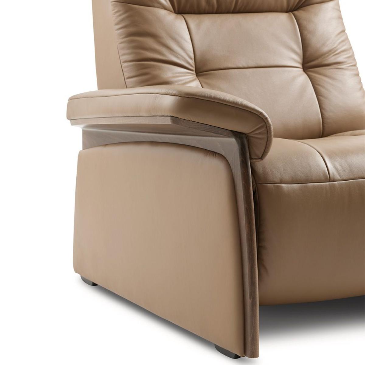 With its gentle curves and generous look, the Stressless Mary sofa is designed and built for a lifetime of comfort. Its cushioning is extra supple and comfortable, offering a soft landing after a hard day. All seat modules can be delivered with motorized adjustment of back and leg support. Stressless Mary matches exquisitely with our Stressless Mayfair recliner, which has been one of our best-selling designs through the decades. Choose between a classic upholstered armrest or an armrest with wooden details for an elegant touch.