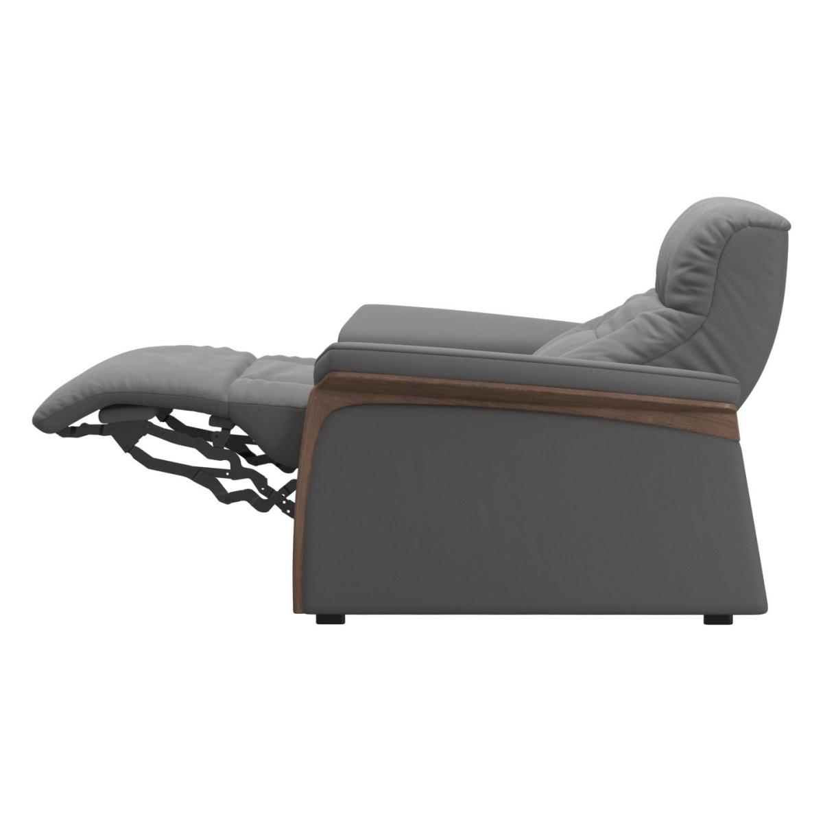 With its gentle curves and generous look, the Stressless Mary Chair is designed and built for a lifetime of comfort. Its cushioning is extra supple and comfortable, offering a soft landing after a hard day. All seat modules, except corner, can be delivered with motorized adjustment of head, back and leg support. Stressless Mary matches exquisitely with the Stressless Mayfair recliner, which has been one of the best-selling designs through the decades. Choose between a classic upholstered armrest or an armrest with wooden details for an elegant touch. Available in a range of leathers and fabrics. Height: 102cm Width: 112cm Depth: 99cm Seat Height: 46cm Seat Depth: 59cm The Mary Recliner Chair is displayed in Paloma Neutral Grey and Walnut Finished Wood.  All screens vary in colour reproduction and whilst every effort has been made to display the colour as accurately as possible it is for guidance only.
