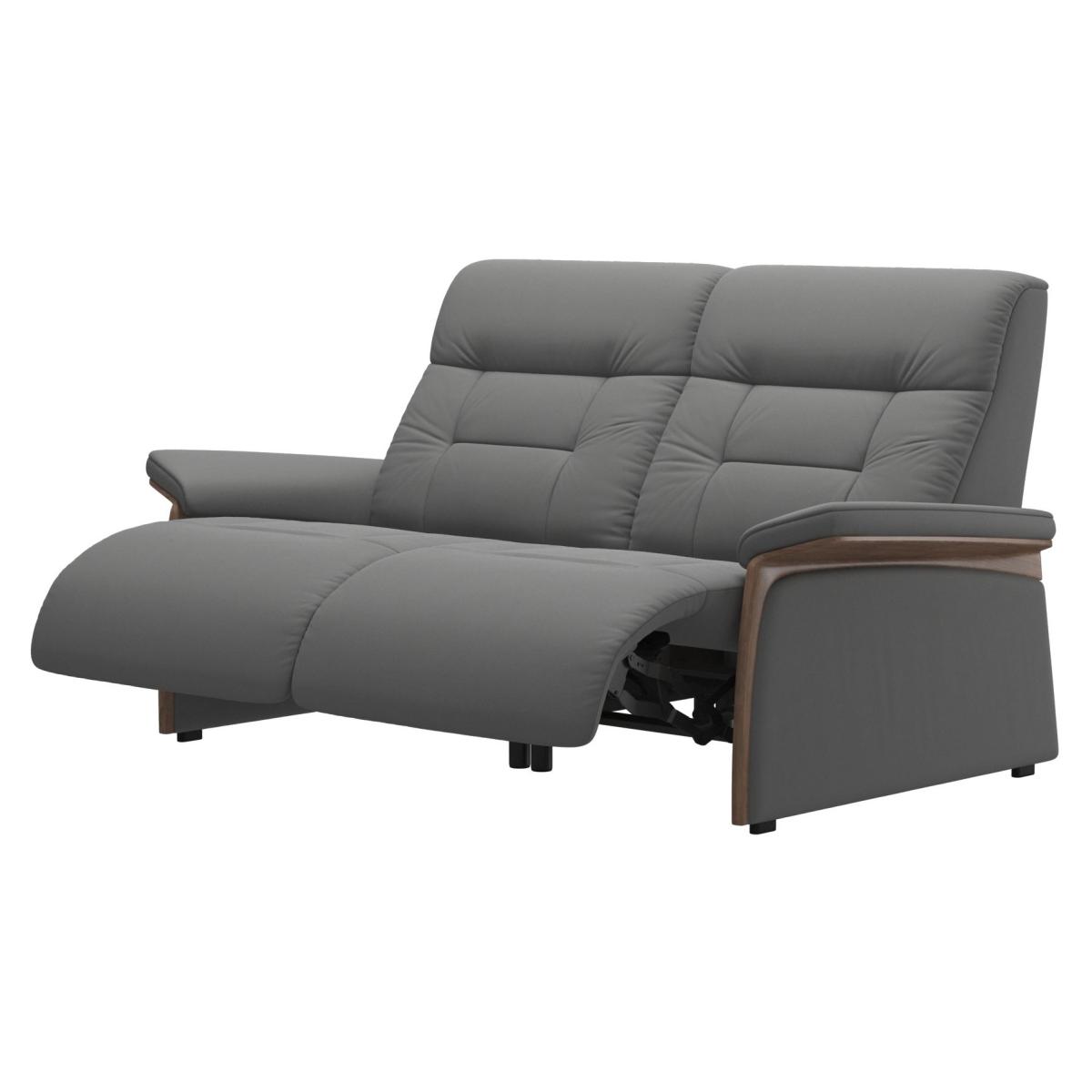 With its gentle curves and generous look, the Stressless Mary Sofa with Wooden Arms is designed and built for a lifetime of comfort. Its cushioning is extra supple and comfortable, offering a soft landing after a hard day. All seat modules, except corner, can be delivered with motorized adjustment of head, back and leg support. Stressless Mary matches exquisitely with the Stressless Mayfair recliner, which has been one of the best-selling designs through the decades. Choose between a classic upholstered armrest or an armrest with wooden details for an elegant touch. Available in a range of leathers and fabrics. 2 Seater Sofa Height: 102cm Width: 188cm Depth: 99cm / 173cm fully extended Seat Height: 46cm Seat Depth: 59cm Images 1-3 display the Mary Sofa in Paloma Neutral Grey with Walnut wood finish Image 4 displays the Mary Sofa in Paloma Funghi with Black Wood Finish Image 5 displays the Mary Sofa in Paloma Grey with Beech Finish All screens vary in colour reproduction and whilst every effort has been made to display the colour as accurately as possible it is for guidance only.