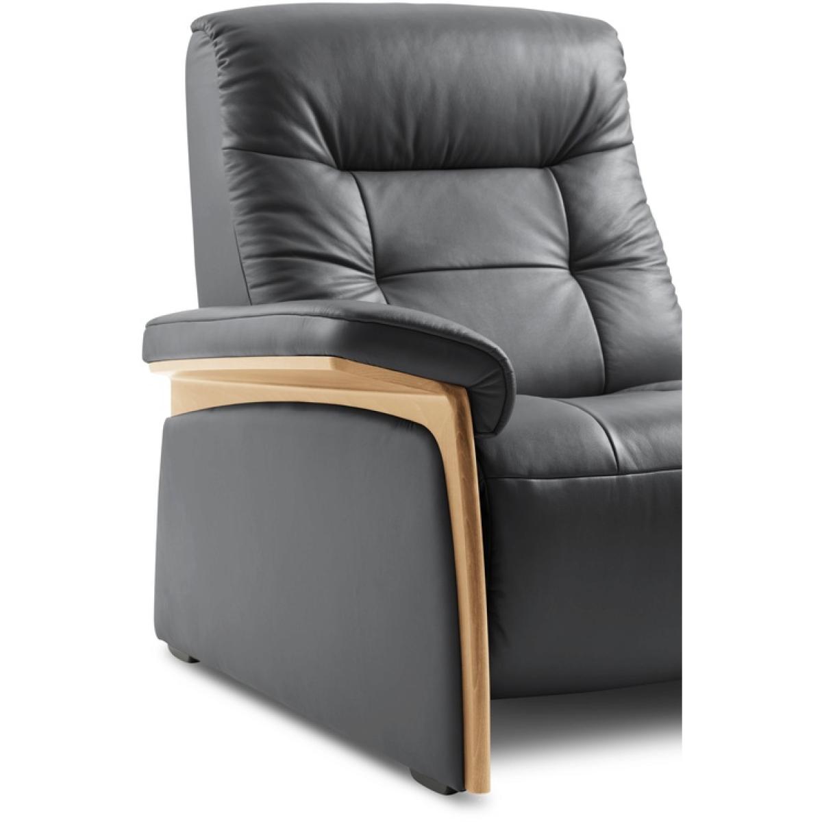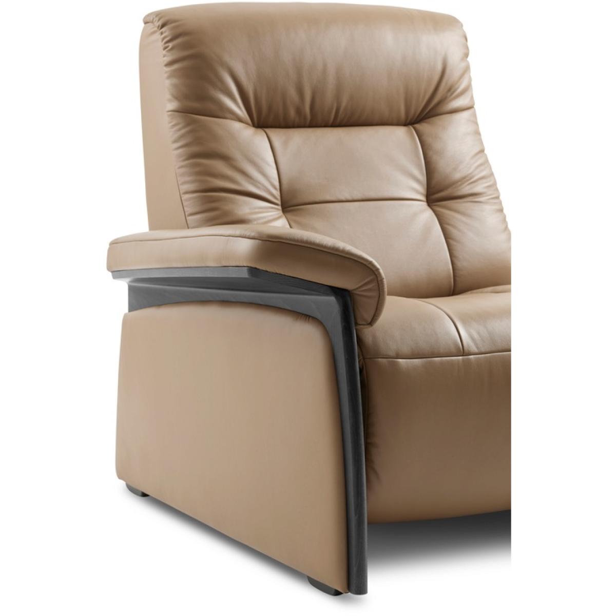 With its gentle curves and generous look, the Stressless Mary Sofa with Wooden Arms is designed and built for a lifetime of comfort. Its cushioning is extra supple and comfortable, offering a soft landing after a hard day. All seat modules, except corner, can be delivered with motorized adjustment of head, back and leg support. Stressless Mary matches exquisitely with the Stressless Mayfair recliner, which has been one of the best-selling designs through the decades. Choose between a classic upholstered armrest or an armrest with wooden details for an elegant touch. Available in a range of leathers and fabrics. 2 Seater Sofa Height: 102cm Width: 188cm Depth: 99cm / 173cm fully extended Seat Height: 46cm Seat Depth: 59cm Images 1-3 display the Mary Sofa in Paloma Neutral Grey with Walnut wood finish Image 4 displays the Mary Sofa in Paloma Funghi with Black Wood Finish Image 5 displays the Mary Sofa in Paloma Grey with Beech Finish All screens vary in colour reproduction and whilst every effort has been made to display the colour as accurately as possible it is for guidance only.