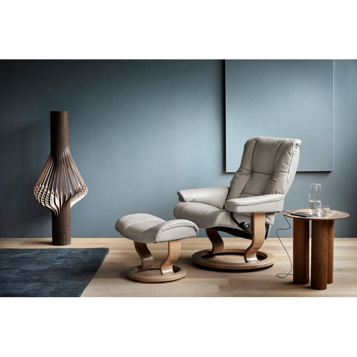 Every bit as sleek and stylish as their names suggest, the Stressless Mayfair recliner collection has gentle curves, padded arms and a super supple seat for the ultimate in comfort while providing lumbar support that adapts to the bodys contours for pure relaxation. Stressless have designed the chair with an effortless 360-degree swivel feature and the chair comes complete with the patented Stressless Glide and Plus Systems, offering unrivalled support for the entire body. The Mayfair features the sleep function which allows you to adjust the headrest flat for an afternoon snooze. The included footstool completes your Mayfair chair and will follow your movement when getting into position. The Soft polyurethane foam pad ensure optimum softness and comfort and is covered by a sumptuous soft polyester fibre. The base is made with laminated beech wood and has a two-stem design for stability and creating a smooth turning action. With a choice of small, medium and large you can pick the right size to suit you. Choose from a wide selection of gorgeous leathers and 5 wood colours to create the perfect look to fit in with your living space d?cor. All screens vary in colour reproduction and whilst every effort has been made to display the colour as accurately as possible it is for guidance only. Please also bear in mind that leather is a natural product. No two hides are exactly the same and there may be subtle shade variation between pieces which is perfectly normal. Stool is not included in this purchase. Stressless Glide System Stressless PlusT M System Sleep function Neck and Lumbar support Polyurethane foam, covered by polyester fibre Laminated beech wood base Flexo springs on a steel frame ensure durable construction and strength 360 rotation Dimensions: Small: 75cm (W) x 73cm (D) x 100cm (H) / Seat height 41cm Medium: 79cm (W) x 73cm (D)x 103cm (H) / Seat height 42cm Large: 88cm (W) x 77cm (D) x 103cm (H) / Seat height 45cm To add a little extra height to your chair, you can purchase the Stressless Elevator ring. For total peace of mind, Stressless guarantee the internal mechanism on all recliners for a period of 10 years from the date of purchase. The 10 year guarantee covers the Plus-system and the internal metal frame, including the metal springs and gliding system. It does not cover damage to leather or woodwork or any faults or damage caused by the use of the product other than in accordance with the manufacturer's recommendations, as well as any faults or damage arising from any repairs made by any persons not authorised by the manufacturer.
