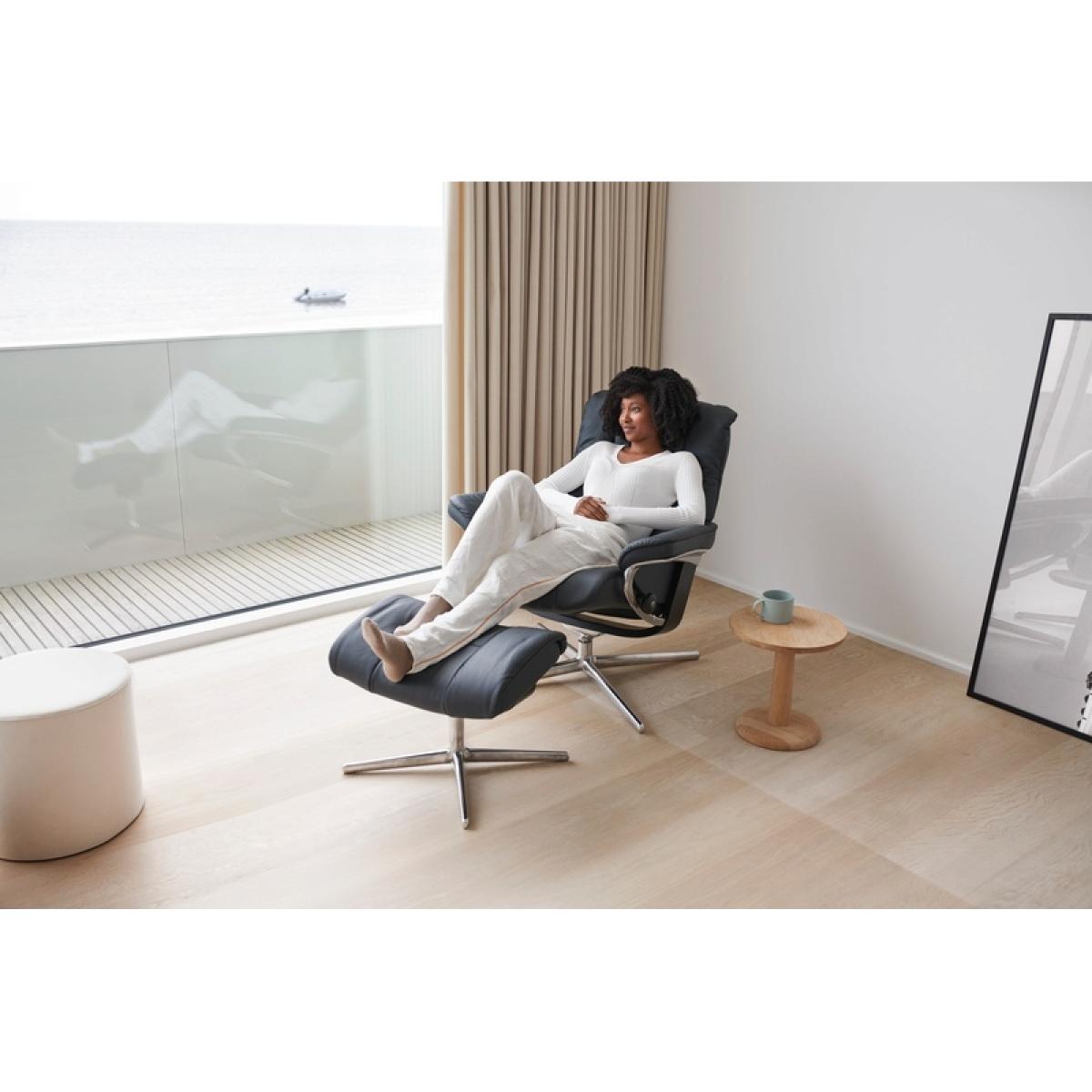 Please note that the image shown is for illustration purposes only, and prices displayed are a “from” price. To see the specific price of the Stressless product you require, please choose the size; grade and footstool option where applicable. The Stressless Mayfair Recliner Chair is simply perfect for the modern living room. The elegant style of this chair is matched by the advanced comfort technology means that you are properly supported when reclining at any angle, whether it's watching TV, reading the paper or having a snooze. Features: Stressless® Plus™ this handy little feature keeps your eye line constant as you recline, which wonders for neck support. Stressless® glide system automatically adjusts to your body as soon as you take a seat. You won't boost upright at any given moment nor will struggle to get into a reclined position. It is the ideal seat-setting function. Sleep Function taking a nap couldn't be easier with a headrest that can lay flat to give you a comfy Swivel the base allows for a complete 360 rotation, allowing you to adjust your direction with ease 10 Year Guarantee on fabrication faults on internal mechanism Patented Stressless Glide® technology moves with you and supports you in comfort Reclining and 360° swivel action Dimensions: Small w/Cross Base: h:102.0cm d:73.0cm w:79.0cm (Seat Height: 44.0cm) Medium w/Cross Base: h:102.0cm d:74.0cm w:83.0cm (Seat Height: 44.0cm) Large w/Cross Base: h:103.0cm d:79.0cm w:92.0cm (Seat Height: 47.0cm) All screens vary in colour reproduction and whilst every effort has been made to display the colour as accurately as possible it is for guidance only. Please also bear in mind that leather is a natural product. No two hides are exactly the same and there may be subtle shade variation between pieces which is perfectly normal.