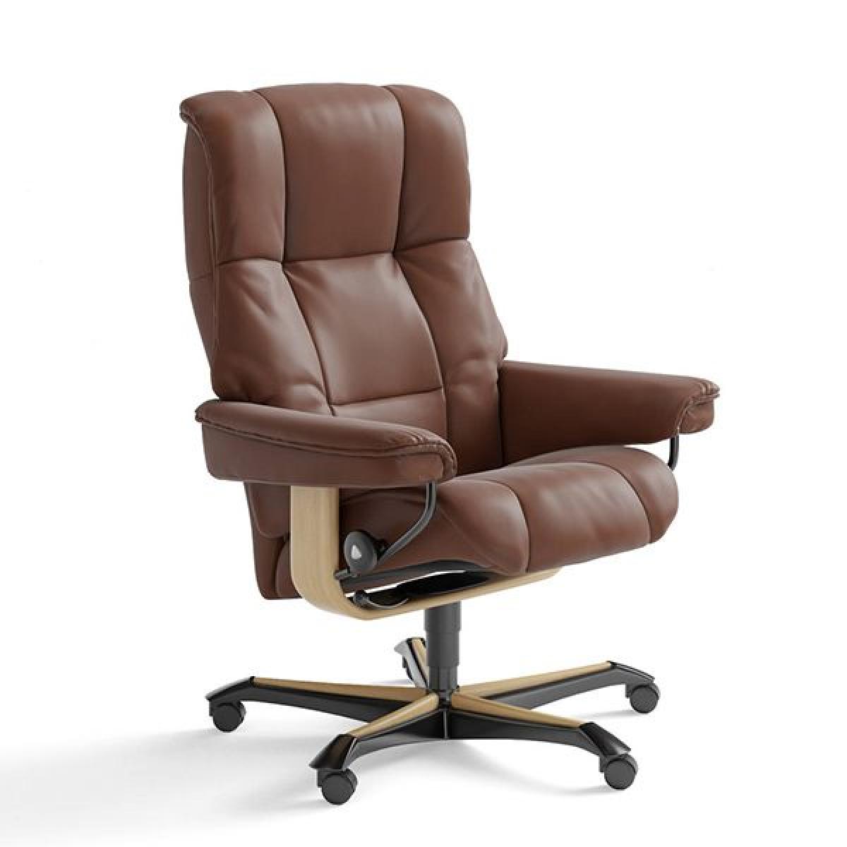 With classic styling, gentle curves, padded arms and supple seats, this office chair from the Mayfair range is the ultimate choice for relaxation. With all the benefits of a Stressless chair in your home office, featuring a wheeled base and a Plus™-system that supports your neck and lumbar area.