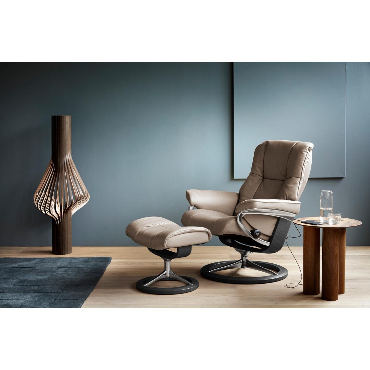 Please note that the image shown is for illustration purposes only, and prices displayed are a “from” price. To see the specific price of the Stressless product you require, please choose the size; grade and footstool option where applicable. The Stressless Mayfair Recliner Chair is simply perfect for the modern living room. The elegant style of this chair is matched by the advanced comfort technology means that you are properly supported when reclining at any angle, whether it's watching TV, reading the paper or having a snooze. Features: Stressless® Plus™ this handy little feature keeps your eye line constant as you recline, which wonders for neck support. Stressless® glide system automatically adjusts to your body as soon as you take a seat. You won't boost upright at any given moment nor will struggle to get into a reclined position. It is the ideal seat-setting function. Sleep Function taking a nap couldn't be easier with a headrest that can lay flat to give you a comfy Swivel the base allows for a complete 360 rotation, allowing you to adjust your direction with ease. 10 Year Guarantee on fabrication faults on internal mechanism Patented Stressless Glide® technology moves with you and supports you in comfort Reclining and 360° swivel action Wide variety of wood colours and leather/fabric options available Dimensions: Small w/Signature Base: h:102.0cm d:73.0cm w:79.0cm (Seat Height: 44.0cm) Medium w/Signature Base: h:102.0cm d:74.0cm w:83.0cm (Seat Height: 44.0cm) Large w/Signature Base: h:103.0cm d:79.0cm w:92.0cm (Seat Height: 47.0cm) All screens vary in colour reproduction and whilst every effort has been made to display the colour as accurately as possible it is for guidance only. Please also bear in mind that leather is a natural product. No two hides are exactly the same and there may be subtle shade variation between pieces which is perfectly normal.
