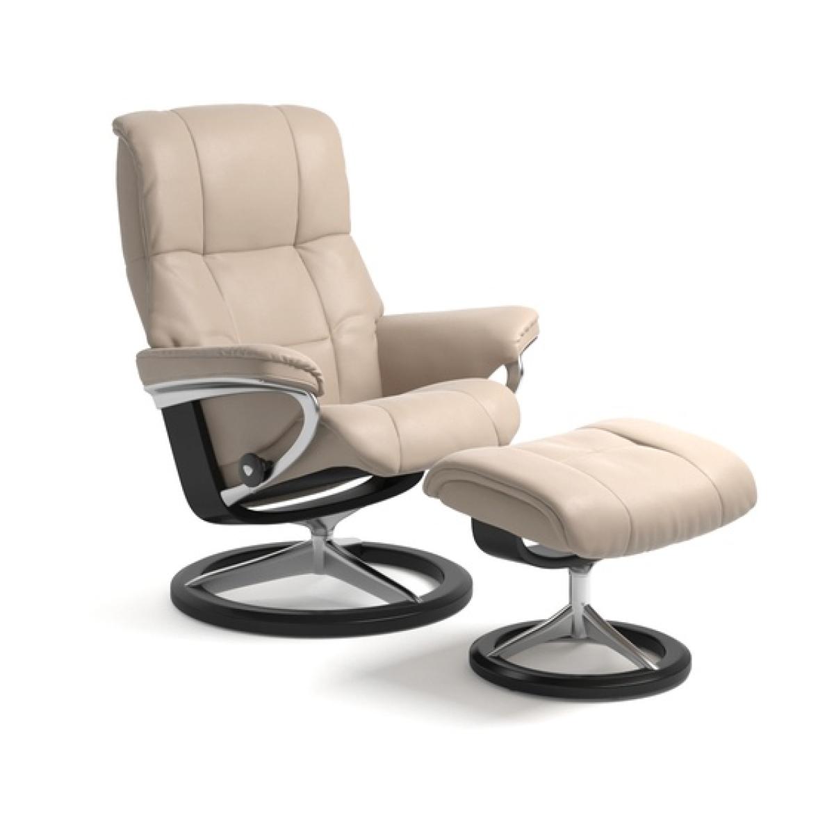 Please note that the image shown is for illustration purposes only, and prices displayed are a “from” price. To see the specific price of the Stressless product you require, please choose the size; grade and footstool option where applicable. The Stressless Mayfair Recliner Chair is simply perfect for the modern living room. The elegant style of this chair is matched by the advanced comfort technology means that you are properly supported when reclining at any angle, whether it's watching TV, reading the paper or having a snooze. Features: Stressless® Plus™ this handy little feature keeps your eye line constant as you recline, which wonders for neck support. Stressless® glide system automatically adjusts to your body as soon as you take a seat. You won't boost upright at any given moment nor will struggle to get into a reclined position. It is the ideal seat-setting function. Sleep Function taking a nap couldn't be easier with a headrest that can lay flat to give you a comfy Swivel the base allows for a complete 360 rotation, allowing you to adjust your direction with ease. 10 Year Guarantee on fabrication faults on internal mechanism Patented Stressless Glide® technology moves with you and supports you in comfort Reclining and 360° swivel action Wide variety of wood colours and leather/fabric options available Dimensions: Small w/Signature Base: h:102.0cm d:73.0cm w:79.0cm (Seat Height: 44.0cm) Medium w/Signature Base: h:102.0cm d:74.0cm w:83.0cm (Seat Height: 44.0cm) Large w/Signature Base: h:103.0cm d:79.0cm w:92.0cm (Seat Height: 47.0cm) All screens vary in colour reproduction and whilst every effort has been made to display the colour as accurately as possible it is for guidance only. Please also bear in mind that leather is a natural product. No two hides are exactly the same and there may be subtle shade variation between pieces which is perfectly normal.