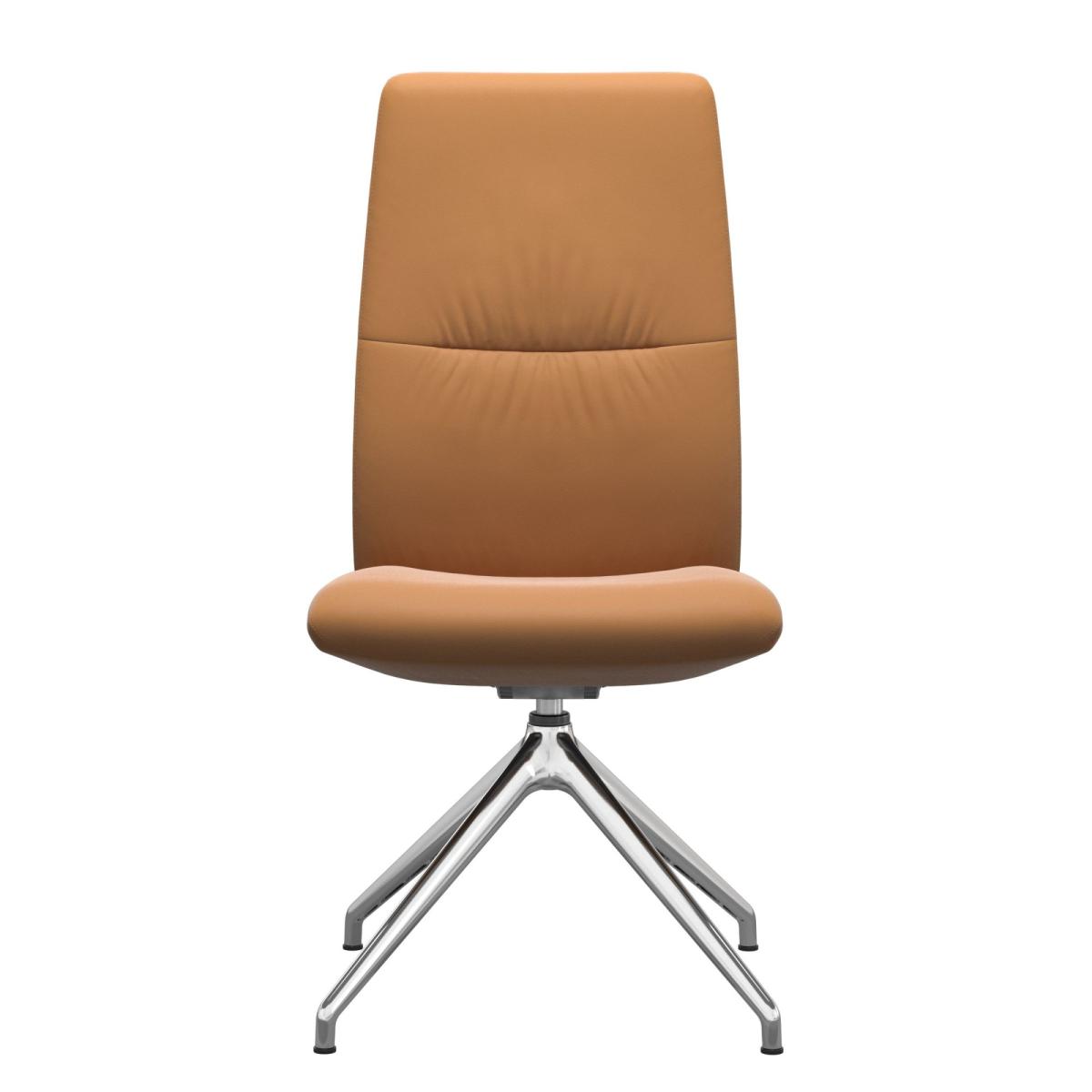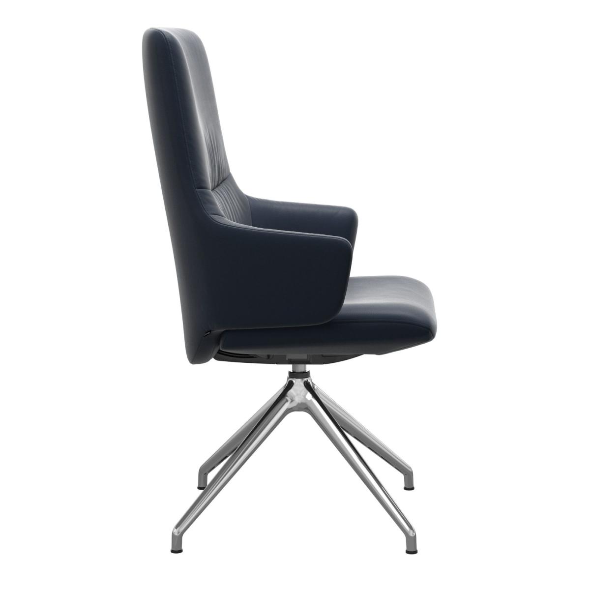 The Stressless® Mint High Back Dining Chair allows you to experience true Stressless® comfort in style. The dining chair's soft and inviting design makes it perfect for enjoyable moments around the dining table. The innovative flexibility in the seat and back allows the dining chair to follow even the slightest movement of the body, meaning you can enjoy the meal even longer due to the supreme comfort and support. Put your personal touch on your dining chair by designing it just the way you want. Choose whether you want your chair with or without armrests, customise your cross base by choosing the steel finish on the legs, and opt for either Paloma or Batick leather grades in a wide range of colours.