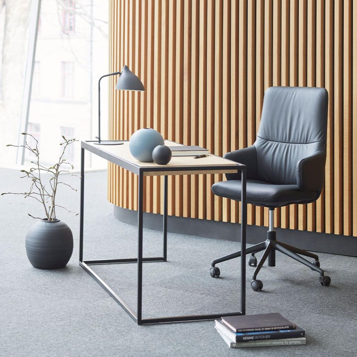 Stressless® Home Office chairs have a light design that will blend in with any style. The chairs give you the possibility to effortlessly shift position during the day. The seat and back follow your movements and offer good support. Lean back, and the backrest will recline while the seat moves forward in a coordinated movement. A discrete flexibility in the seat offers good support and reduces the pressure on your lower thighs as you lean forward. The large choice of covers makes it easy to match with the rest of the interior, and you can even get dining chairs with the exact same cushion design and covers. The wheels on the base make it easy to move around, and there is a lever under the seat that allows you to adjust the seat height by up to 12 centimetres.