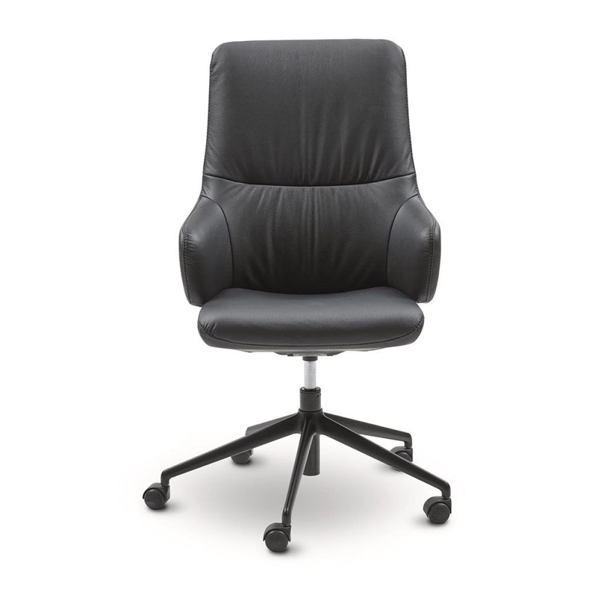 Stressless® Home Office chairs have a light design that will blend in with any style. The chairs give you the possibility to effortlessly shift position during the day. The seat and back follow your movements and offer good support. Lean back, and the backrest will recline while the seat moves forward in a coordinated movement. A discrete flexibility in the seat offers good support and reduces the pressure on your lower thighs as you lean forward. The large choice of covers makes it easy to match with the rest of the interior, and you can even get dining chairs with the exact same cushion design and covers. The wheels on the base make it easy to move around, and there is a lever under the seat that allows you to adjust the seat height by up to 12 centimetres.