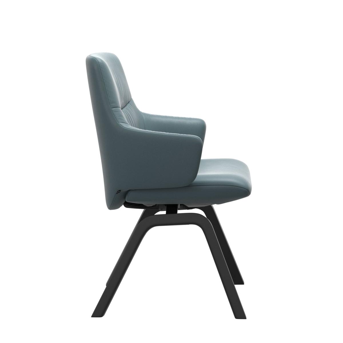 The Stressless® Mint Low Back Dining Chair allows you to experience true Stressless® comfort in style. The dining chair's soft and inviting design makes it perfect for enjoyable moments around the dining table. The innovative flexibility in the seat and back allows the dining chair to follow even the slightest movement of the body, meaning you can enjoy the meal even longer due to the supreme comfort and support. Put your personal touch on your dining chair by designing it just the way you want. Choose whether you want your chair with or without armrests, customise your contemporary base by choosing the wood finish on the legs, and opt for either Paloma or Batick leather grades in a wide range of colours.