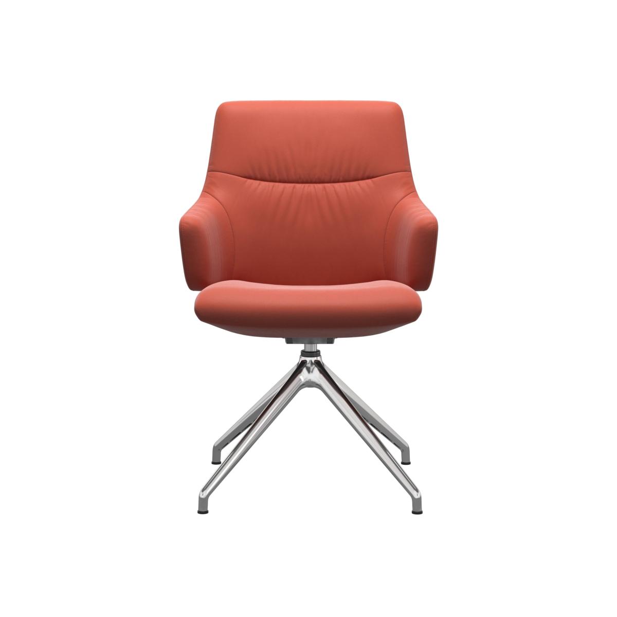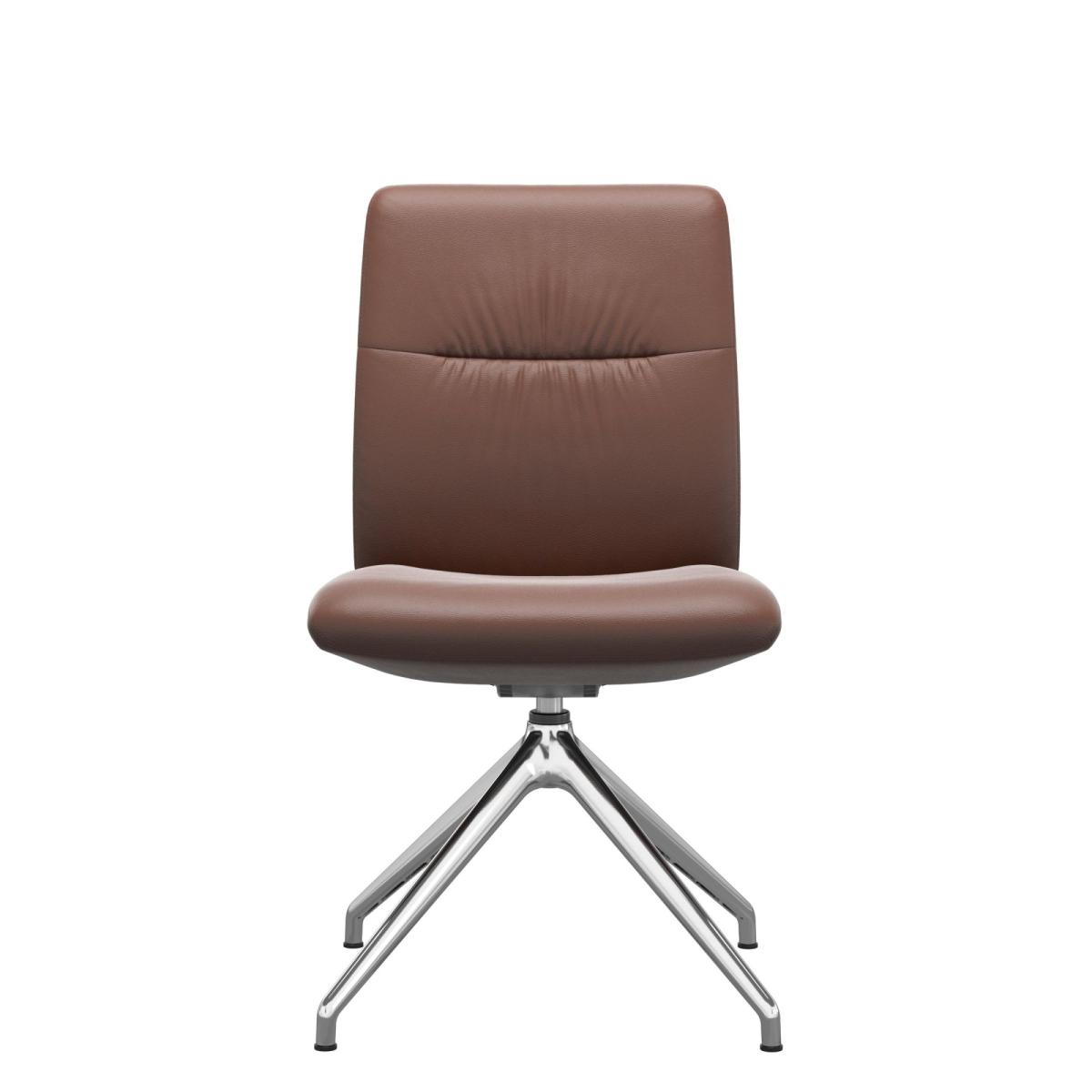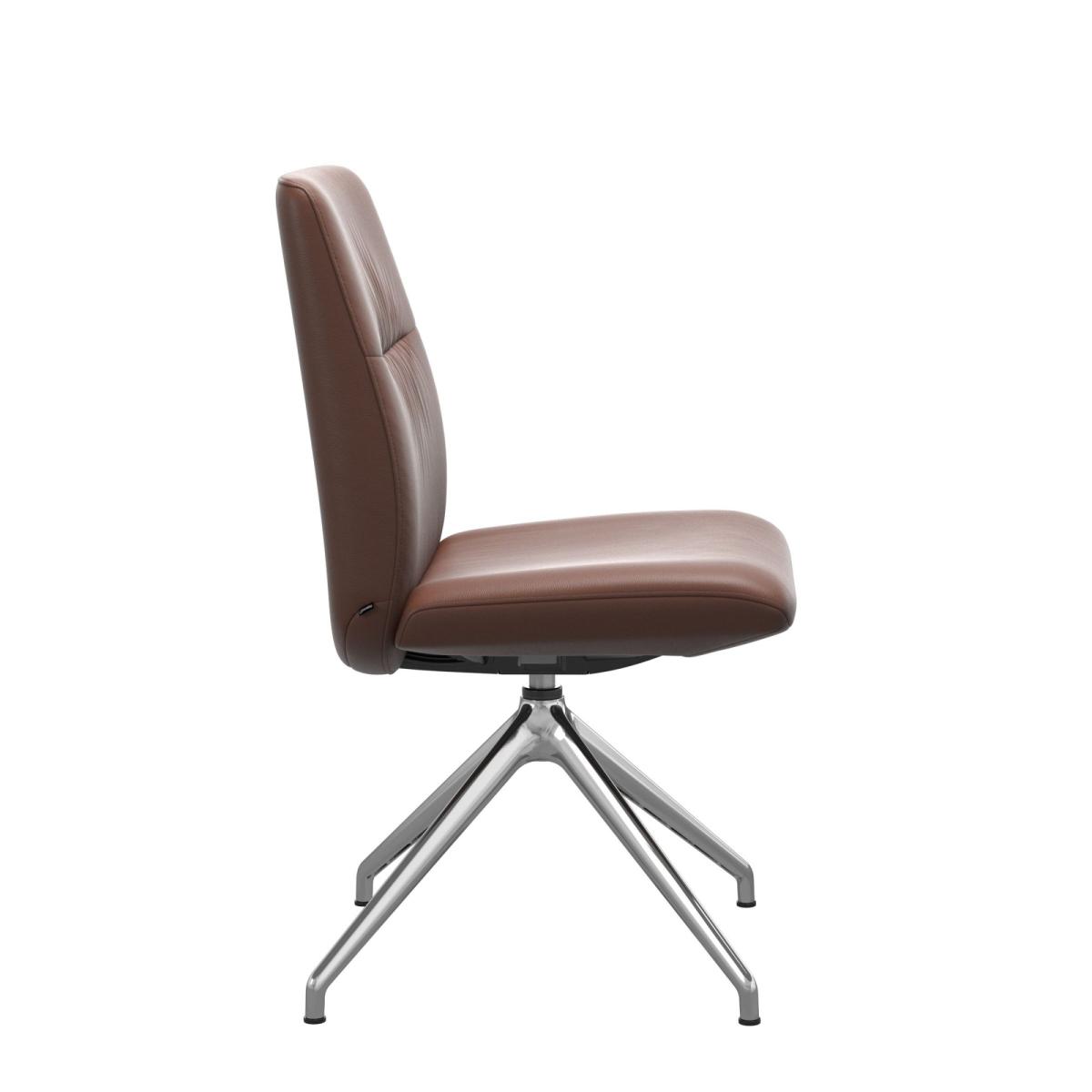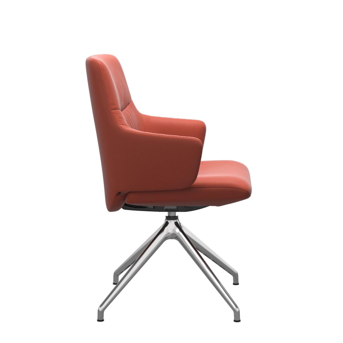 The Stressless® Mint Low Back Dining Chair allows you to experience true Stressless® comfort in style. The dining chair's soft and inviting design makes it perfect for enjoyable moments around the dining table. The innovative flexibility in the seat and back allows the dining chair to follow even the slightest movement of the body, meaning you can enjoy the meal even longer due to the supreme comfort and support. Put your personal touch on your dining chair by designing it just the way you want. Choose whether you want your chair with or without armrests, customise your cross base by choosing the metal finish on the legs, and opt for either Paloma or Batick leather grades in a wide range of colours.