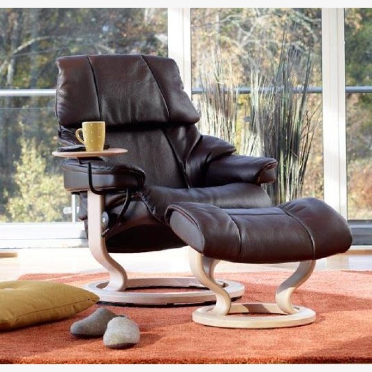 Please note that the image shown is for illustration purposes only, and prices displayed are a “from” price. To see the specific price of the Stressless product you require, please choose the size; grade and footstool option where applicable. Highly sought after, this stylish recliner will surpass all your expectations in both comfort and support. With super soft contours and wonderfully plush cushioning, this recliner offers comfort in abundance. Stressless have created the Reno with the Glide and Plus systems that respond to your bodys slightest movement for your perfect position. Coupled with a full 360-degree swivel feature and adjustable headrest, this reclining chair delivers superior support and unprecedented comfort. The matching stool completes the set and will follow your movement when getting into position. The Reno comes with a choice of small, medium and large you can pick the right size to suit you. Choose from a wide selection of gorgeous leathers and 5 wood colours to create the perfect look to fit in with your living space dcor. The Soft polyurethane foam pad ensure optimum softness and comfort and is covered by a sumptuous soft polyester fibre. The base is made with laminated beech wood and has a two-stem design for stability and creating a smooth turning action. Features: Stressless Glide System Stressless PlusT M System Sleep function Neck and Lumbar support Footstool follows your movements with built-in glide function Polyurethane foam, covered by polyester fibre Laminated beech wood base Flexo springs on a steel frame ensure durable construction and strength 360 rotation Dimensions: Small Chair- 75cm (W) x 75cm (D) x 96cm (H) / Seat Height - 40cm Medium Chair - 79cm (W) x 75cm (D) x 98cm (H) / Seat Height - 42cm Large Chair - 88cm (W) x 78cm (D) x 98cm (H) / Seat Height - 44cm Stool - 55cm (W) x 41cm (D) x 40cm (H) To add a little extra height to your chair, you can purchase the Stressless Elevator ring here. For total peace of mind, Stressless guarantee the internal mechanism on all recliners for a period of 10 years from the date of purchase. The 10 year guarantee covers the Plus-system and the internal metal frame, including the metal springs and gliding system. It does not cover damage to leather or woodwork or any faults or damage caused by the use of the product other than in accordance with the manufacturer's recommendations, as well as any faults or damage arising from any repairs made by any persons not authorised by the manufacturer. All screens vary in colour reproduction and whilst every effort has been made to display the colour as accurately as possible it is for guidance only. Please also bear in mind that leather is a natural product. No two hides are exactly the same and there may be subtle shade variation between pieces which is perfectly normal.