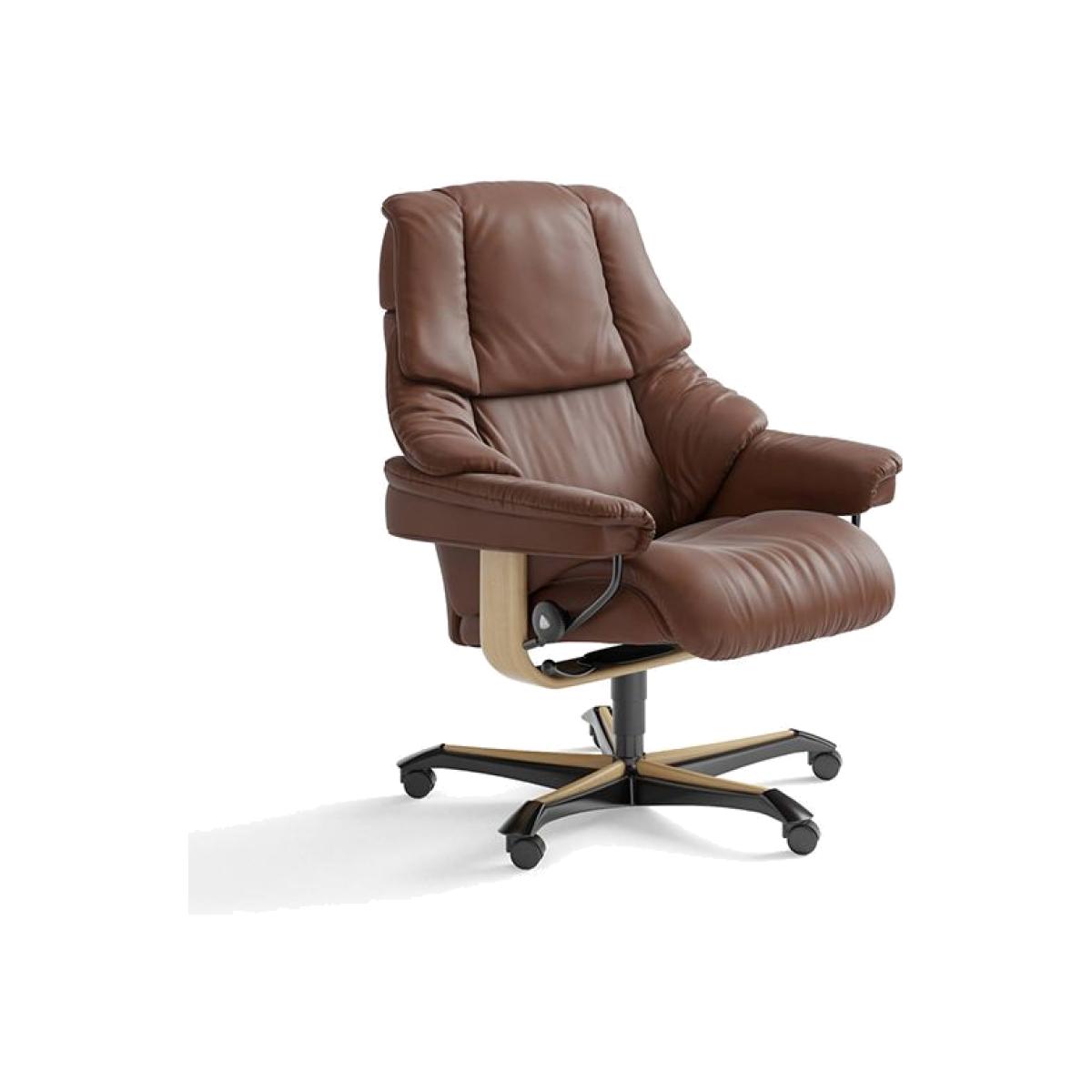 With an adjustable neck support, soft and sleek cushioning and a modern frame design, the Stressless Reno recliner range is amongst their most popular of recliners. With all the benefits of a Stressless chair in your home office, featuring a wheeled base and a Plus™-system that supports your neck and lumbar area.