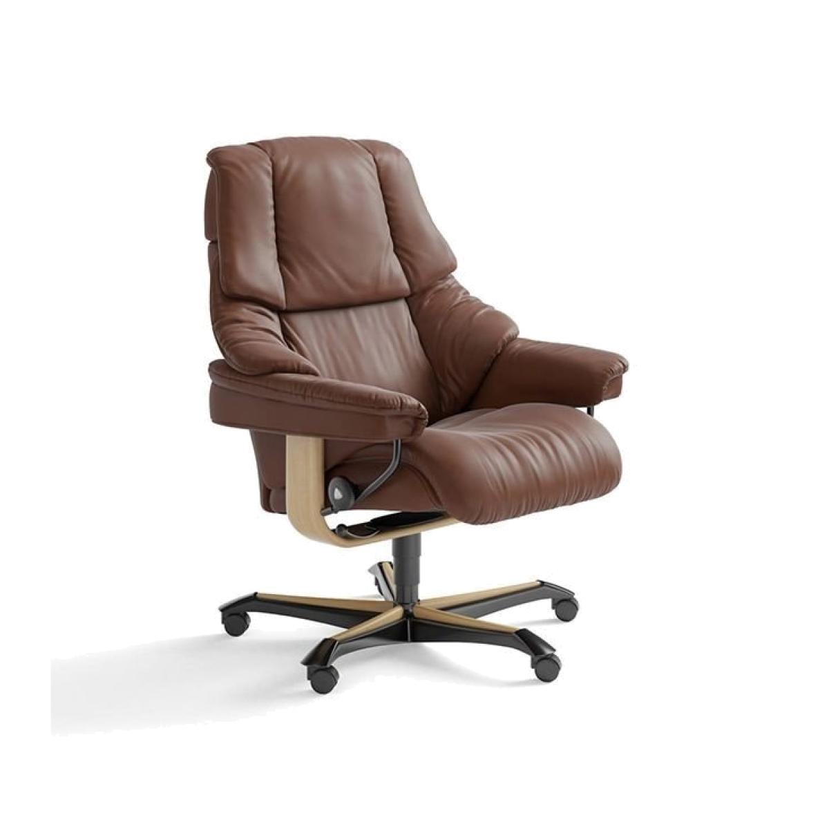 With an adjustable neck support, soft and sleek cushioning and a modern frame design, the Stressless Reno recliner range is amongst their most popular of recliners. With all the benefits of a Stressless chair in your home office, featuring a wheeled base and a Plus™-system that supports your neck and lumbar area.