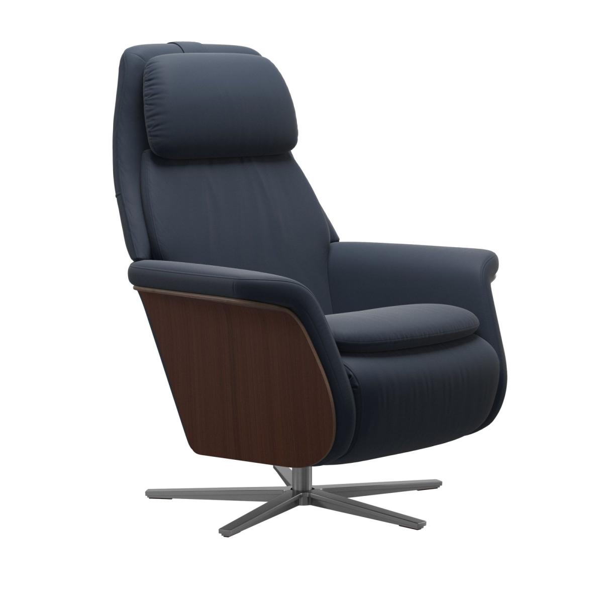 The Stressless® Sam Power Recliner is true to its Scandinavian design heritage. This power recliner has a generous and open design with round soft shapes and a curved back and seat that invite you to relax. All comfort functions and motions are motorised, synchronised and individually adjustable. Choose between a wide range of colours in four different leather grades, as well as the wood swatch on the delicate side panels and metal finish on the Sirius base to customise your recliner and truly make it your own.