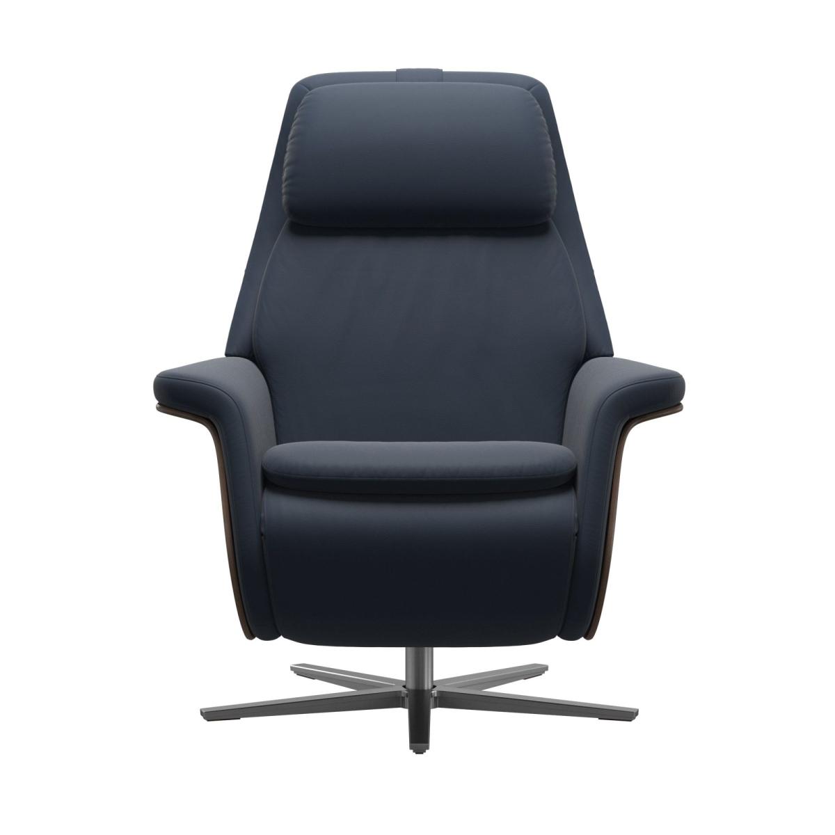 The Stressless® Sam Power Recliner is true to its Scandinavian design heritage. This power recliner has a generous and open design with round soft shapes and a curved back and seat that invite you to relax. All comfort functions and motions are motorised, synchronised and individually adjustable. Choose between a wide range of colours in four different leather grades, as well as the wood swatch on the delicate side panels and metal finish on the Sirius base to customise your recliner and truly make it your own.