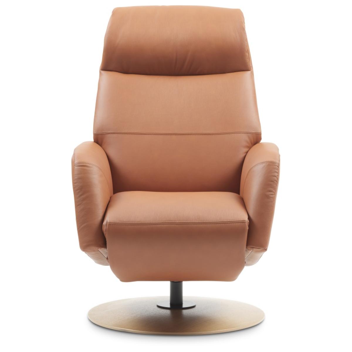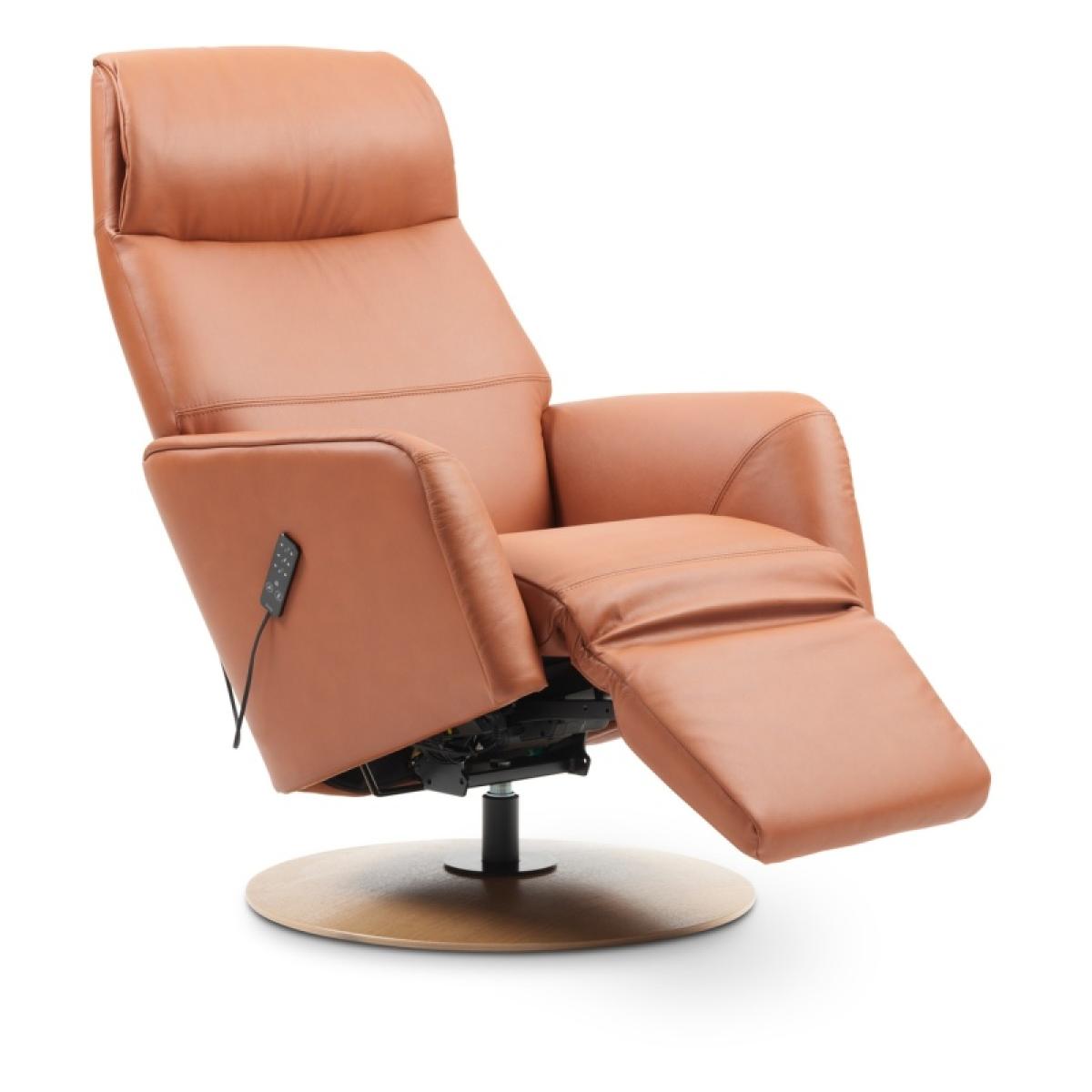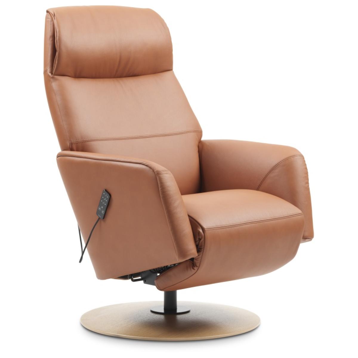 With it's sleek and elegant design, the Stressless Scott Power Recliner Chair blends perfectly with any interior. The back and seat are slightly curved, providing a soft comfortable place to relax. The adaptable neck support works for multiple users of varying heights. All comfort functions are motorised, synchronised and adjustable. The sleek disc base not only adds a modern touch to any living space but also offers 360-degree swivel functionality, allowing for easy movement and accessibility. Upholstered in premium leather or fabric options, the Stressless Scott recliner blends seamlessly with various interior styles, making it a versatile addition to your home. Shown here in Paloma New Cognac leather with Oak wood disc base. Features: 10 Year Guarantee on fabrication faults on internal mechanism High back for a supportive seat Motorised, synchronised and adjustable Adaptable neck support Chair Dimensions: Width: 76.0 cm Depth: 94.0 cm Height: 117.0 cm Seat height: 51.0 cm Seat depth: 55.0 cm Depth fully extended: 181.0 cm All screens vary in colour reproduction and whilst every effort has been made to display the colour as accurately as possible it is for guidance only.