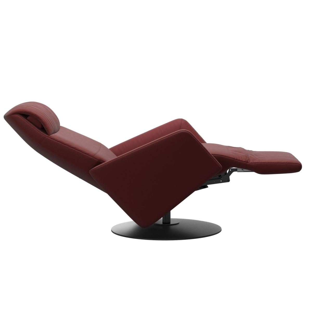 The Stressless® Scott Power Recliner blends perfectly with any interior thanks to its sleek and elegant design. The back and seat are slightly curved, providing a soft, comfortable place to relax in style. The adaptable neck support is perfect for a variety of heights, while all comfort functions are motorised, synchronised and adjustable, emphasising the practical nature of this recliner. Give your chair a personal touch by choosing from a range of leather grades and colours, and wood finish for the stylish disc base, making this chair uniquely yours.