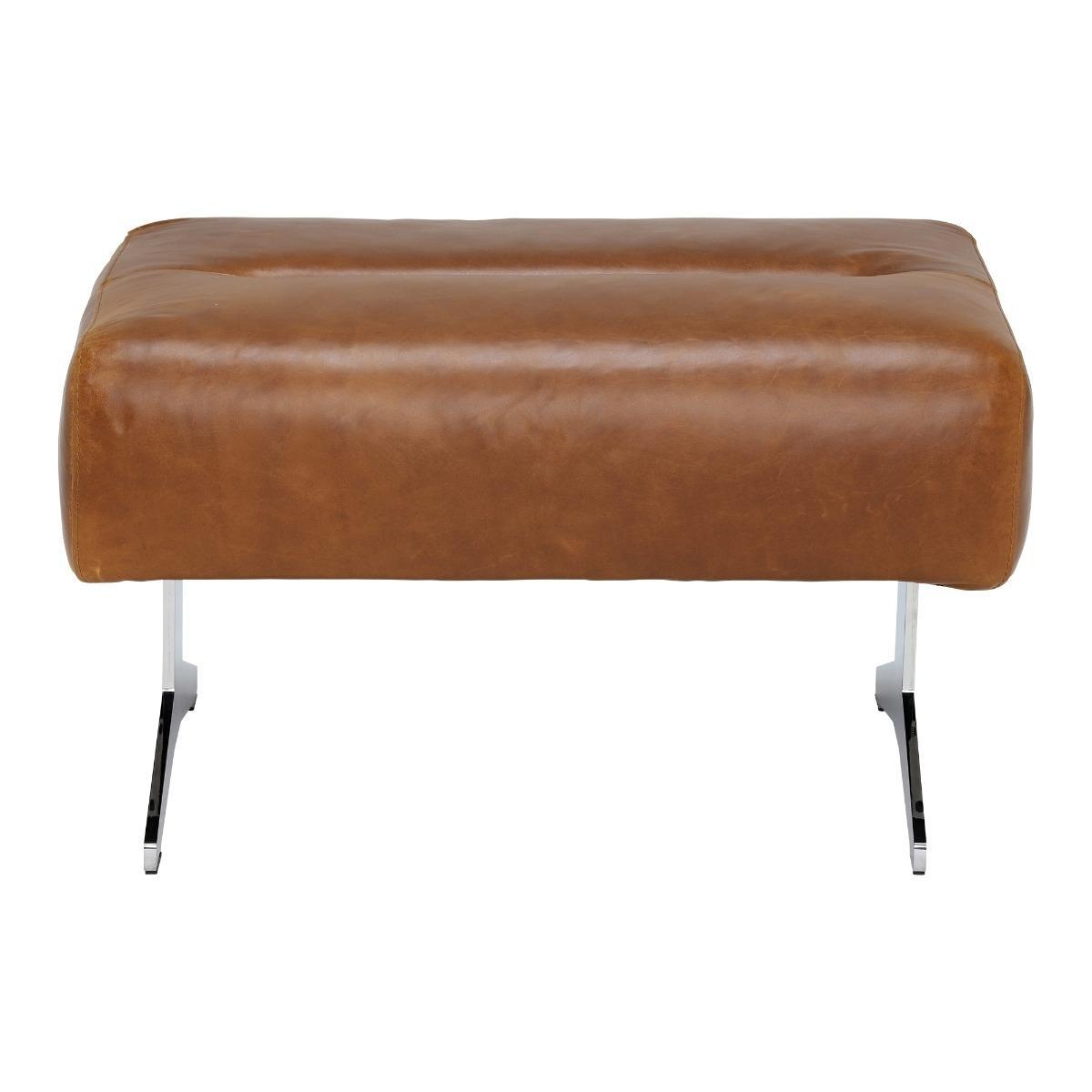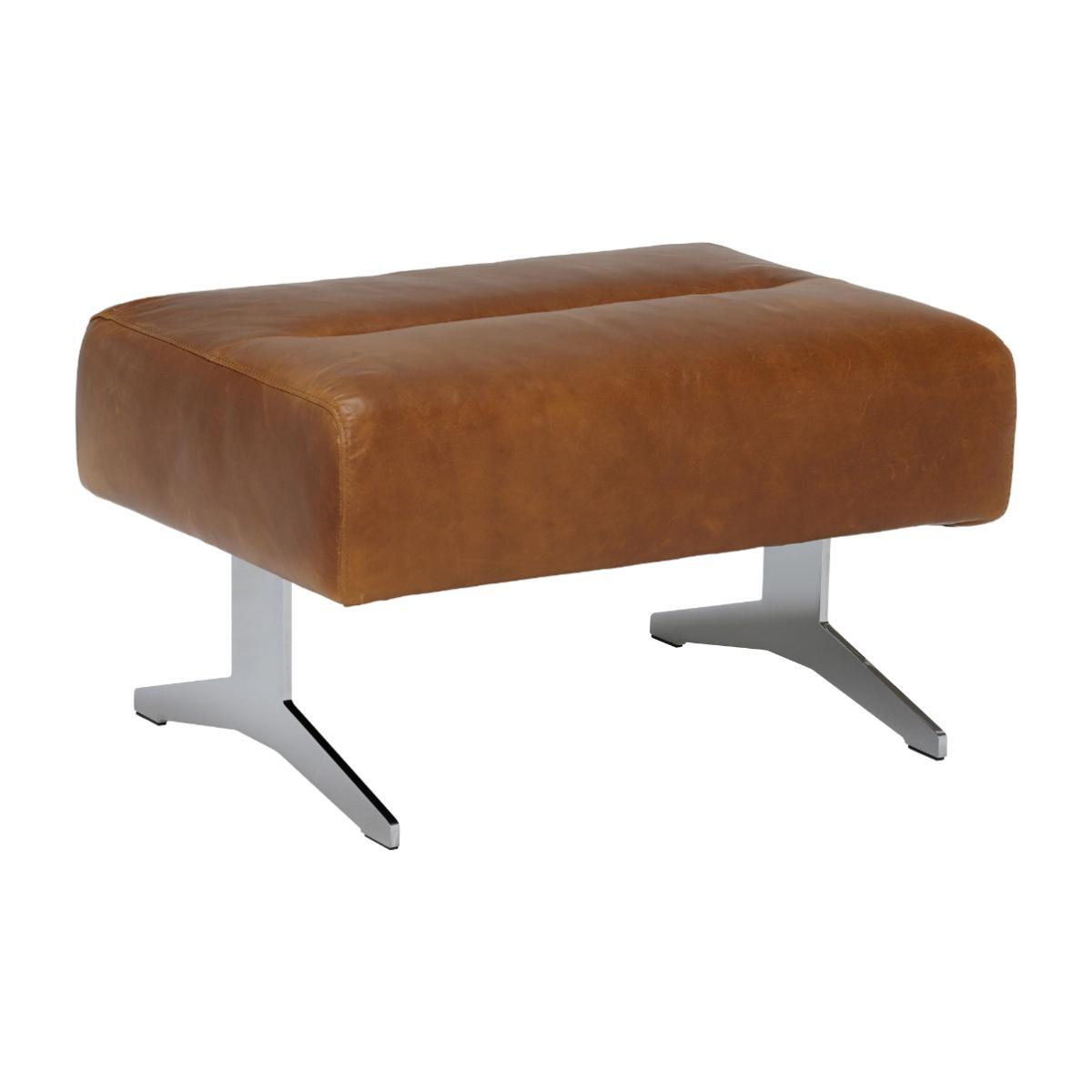 Design. Luxurious leather works perfectly with the sleek chrome of the Stella Ottoman's streamline base. An ideal accompaniment to the Stella Sofa, this comfy ottoman offers foam pad cushioning for a firm and supportive place to pop your feet. Beautifully upholstered in pioneer leather with minimal stitched detailing, the Stella provides an urban yet elegant edge to modern interiors.