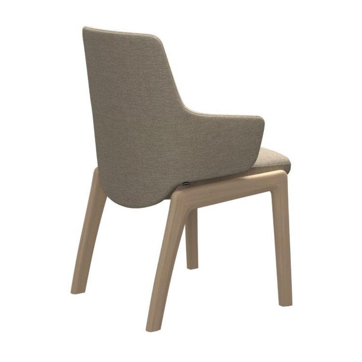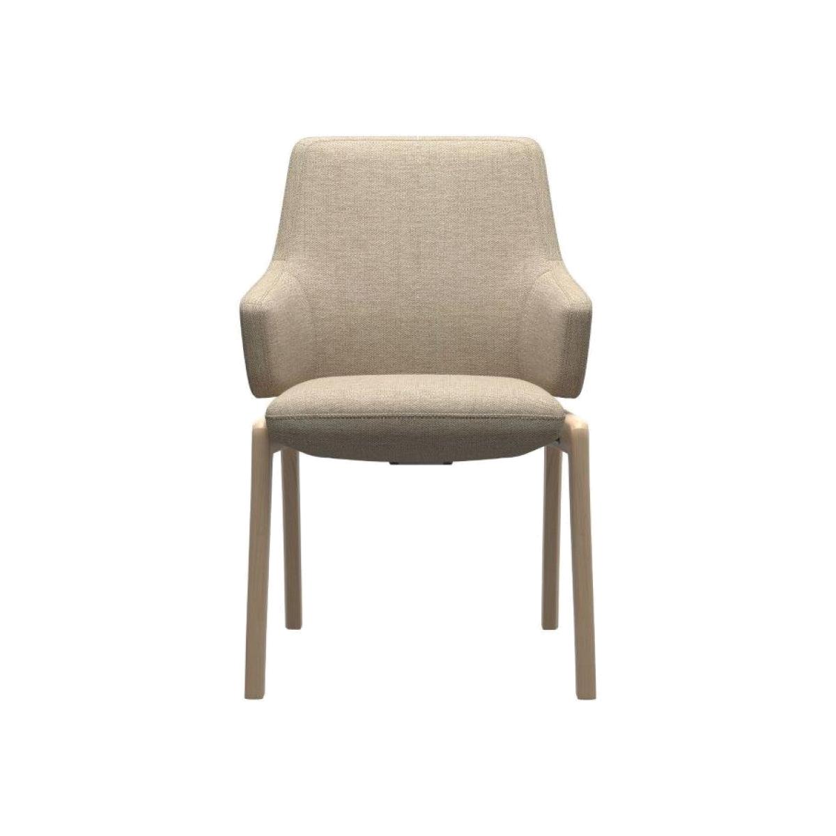 Experience true Stressless? comfort with Stressless? Vanilla. The dining chairs inviting design, with box edge cushioning and sidewalls that are accentuated by beautiful French seams, makes it perfect for enjoyable moments around the dining table. The innovative flexibility in the seat and back allows the dining chair to follow the slightest movement of the body. This way you can enjoy the meal even longer. Choose between high and low back, with or without armrests. Put your personal touch on your dining chairs by designing them just the way you want. Choose from the Stressless? range of materials, colours and all our Dining leg types in wood or metal. Upholstered in a choice of leather or fabric Shown here in Daisy Beige fabric with Natural finish wooden legs Rounded legs in solid wood quality Large Chair Dimensions - W 58cm x D 62cm x H 92cm Seat Height 48cm x Seat Depth 45cm All screens vary in colour reproduction and whilst every effort has been made to display the colour as accurately as possible it is for guidance only.