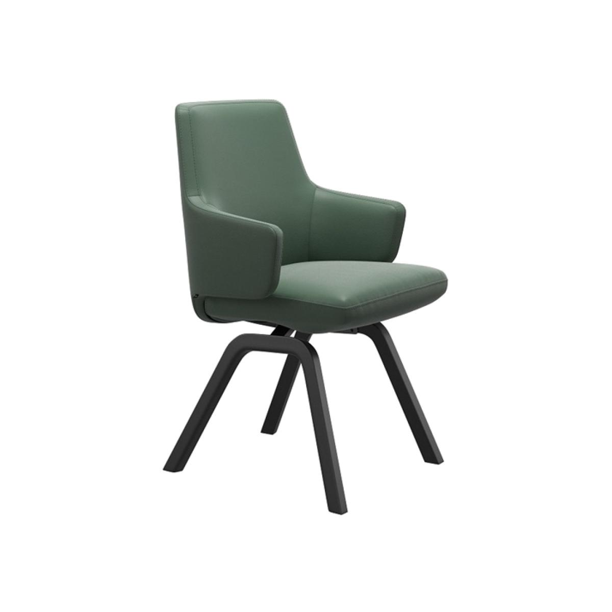 Experience true Stressless? comfort with Stressless? Vanilla. The dining chairs inviting design, with box edge cushioning and sidewalls that are accentuated by beautiful French seams, makes it perfect for enjoyable moments around the dining table. The innovative flexibility in the seat and back allows the dining chair to follow the slightest movement of the body. This way you can enjoy the meal even longer. Choose between high and low back, with or without armrests. Put your personal touch on your dining chairs by designing them just the way you want. Choose from the Stressless? range of materials, colours and all our Dining leg types in wood or metal. Upholstered in a choice of leather or fabric Shown here in Paloma Dark Green leather with Matte Black wooden legs Curved base in steel Large Chair Dimensions - W 58 cm x D 62 cm x H 92cm Seat Height 48cm x Seat Depth 45cm All screens vary in colour reproduction and whilst every effort has been made to display the colour as accurately as possible it is for guidance only.
