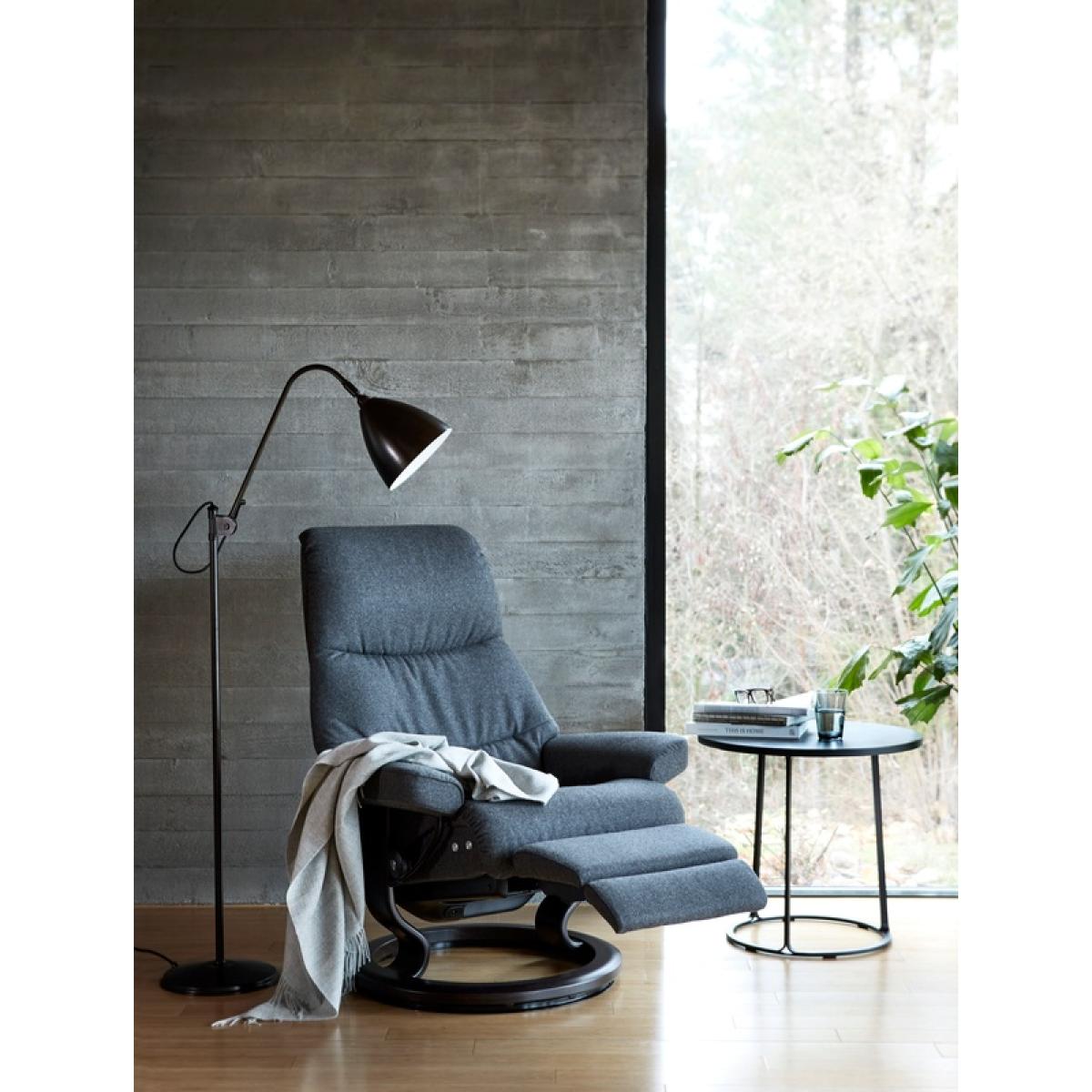 Please note that this product does NOT come with the footstool included A sleek and refined silhouette with clean lines. Experience the padded, elongated back of the Stressless View Recliner Chair and sink into a comfortable reclining position.. Swivel with a full 360 rotation, you can change your direction with ease. Stressless® Plus™ this innovative system automatically adjusts the headrest as you recline, giving you uninterrupted eye-line support whether you're watching TV or reading. Sleep Function transforms the headrest so that it because comfortably flat for you to take that much needed power nap. Stressless® glide system perfectly adapts to your body as soon as you take a seat. You won't feel the chair working against you like with other recliners. Dimensions Height (cm): 105.0 Width (cm): 78.0 Depth (cm): 78.0 Technical Specification Footstool not included Small w/Classic Base: h:108.0cm d:78.0cm w:78.0cm (Seat Height: 39.0cm) Medium w/Classic Base: h:109.0cm d:81.0cm w:79.0cm (Seat Height: 41.0cm) Large w/Classic Base: h:109.0cm d:83.0cm w:91.0cm (Seat Height: 44.0cm) Reclining and 360° swivel action 10 Year Guarantee on fabrication faults on internal mechanism Available in a wide range of different leather and fabric colours Patented Stressless Glide® technology moves with you and supports you in comfort