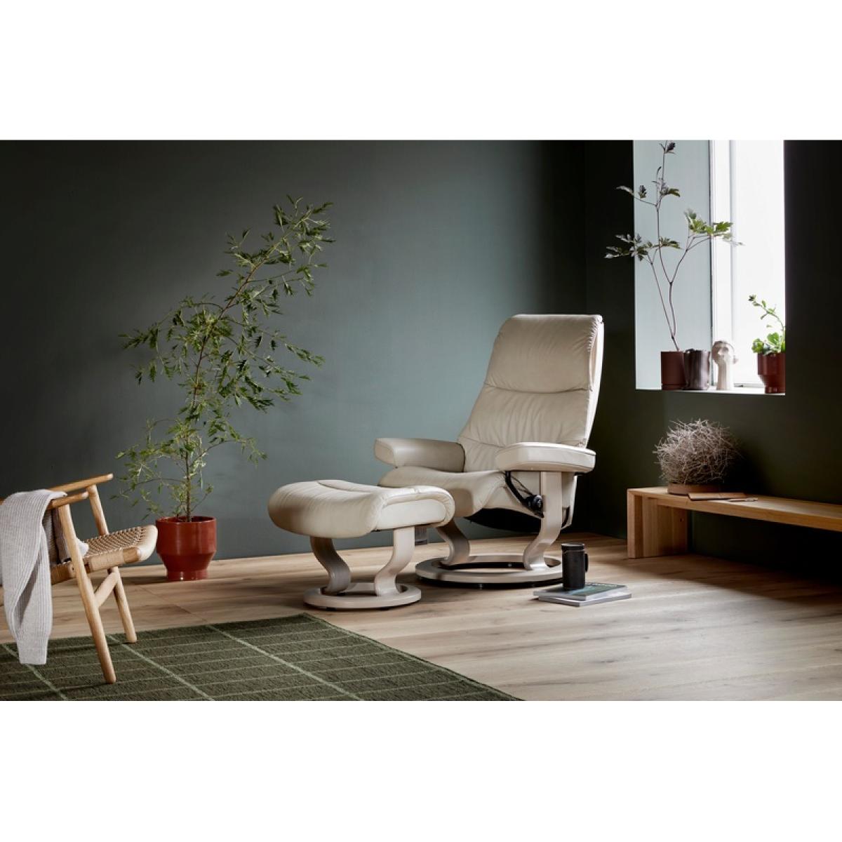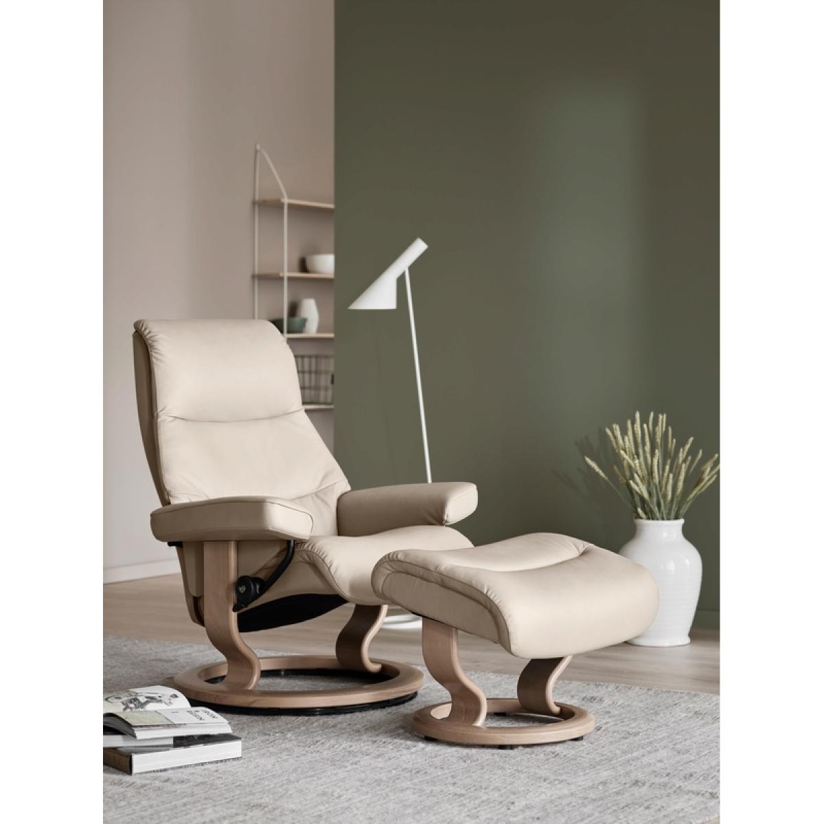 The perfect stool for the Stressless View recliner chair. The stool is like the recliner, elegant and cool, with the well-known Stressless features. 10-year guarantee on the internal mechanism Large choice of leathers and fabrics Choice of 6 wood finishes  Assembly required Footstool Dimensions (H x W x D): 40cm x 57cm x 47cm The chair is not included in this price