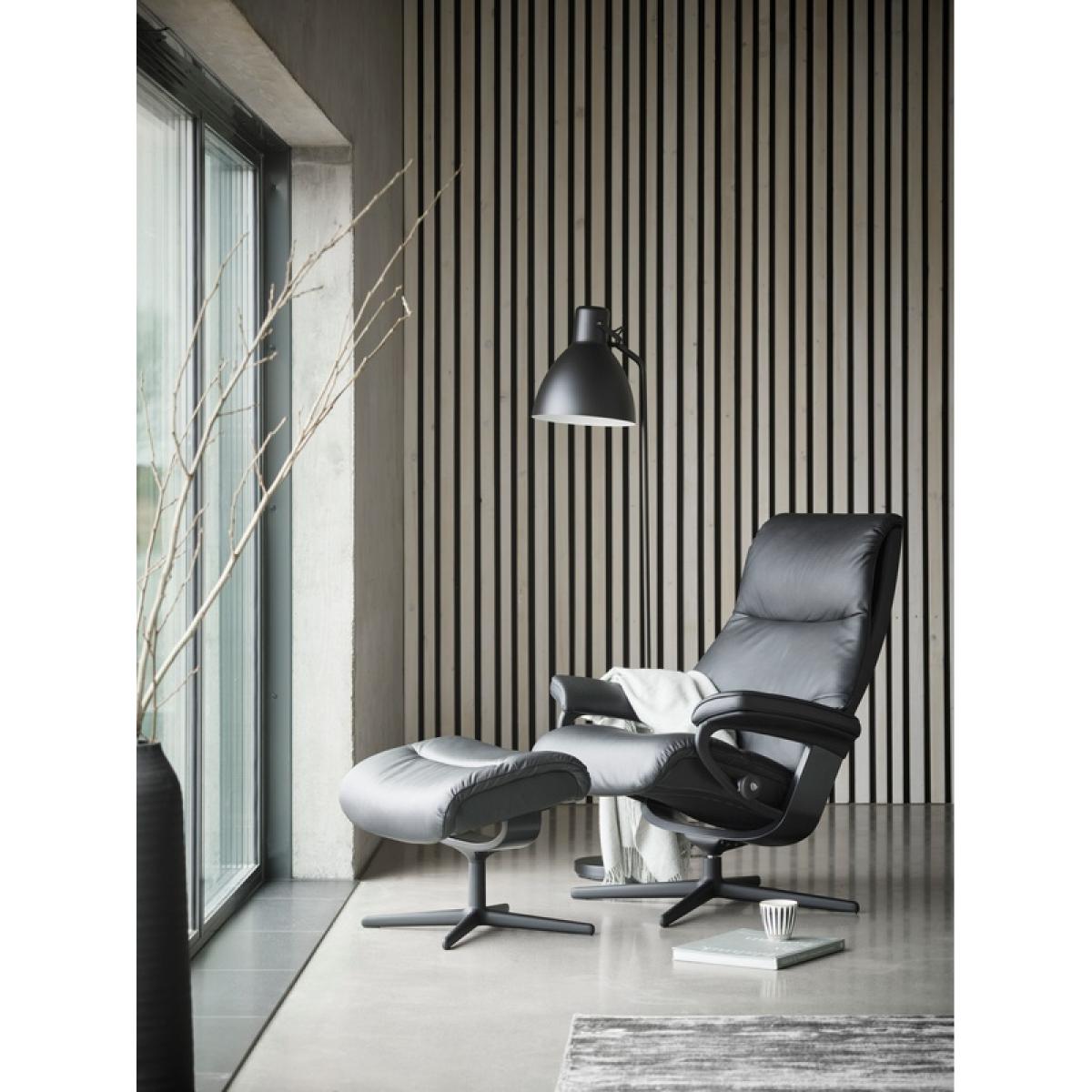 The perfect stool for the Stressless View recliner chair. The stool is like the recliner, elegant and cool, with the well-known Stressless features. 10-year guarantee on the internal mechanism Large choice of leathers and fabrics Choice of 6 wood finishes  Assembly required Footstool Dimensions (H x W x D): 43cm x 57cm x 47cm Please Note, the chair is not included in this price