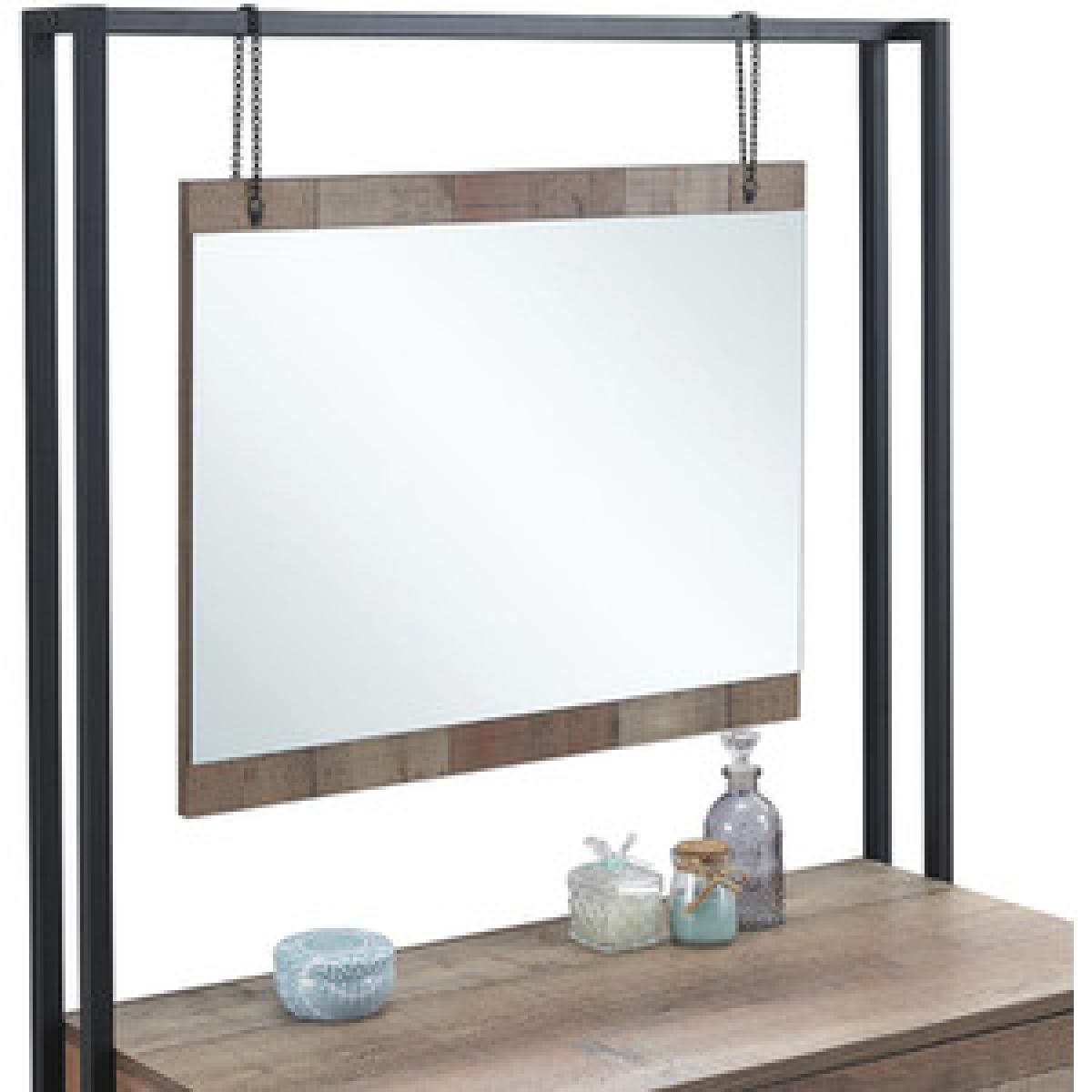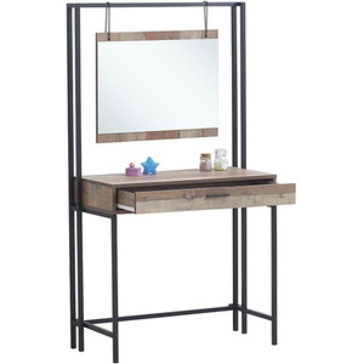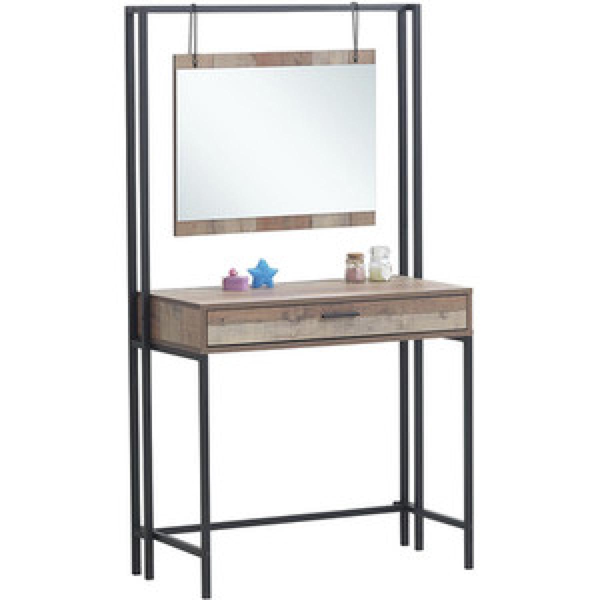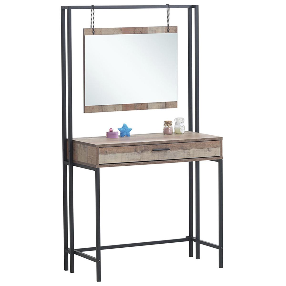 The Stretton Dressing Table delivers a striking rustic industrial combination of distressed-look oak effect panels. This beautifully designed Dressing Table comes complete with a dresser drawer and mirror that hangs from the top frame by rustic chains.
