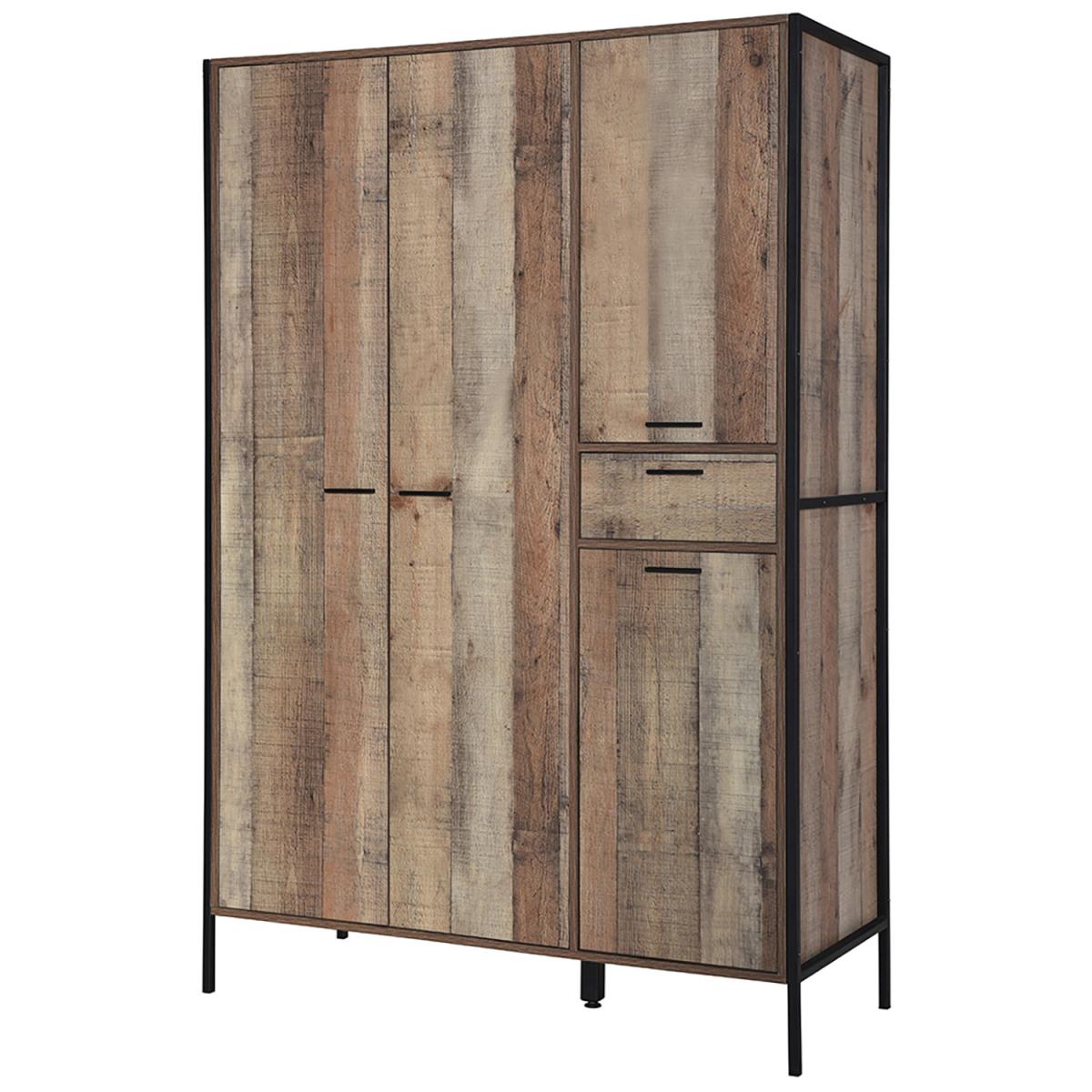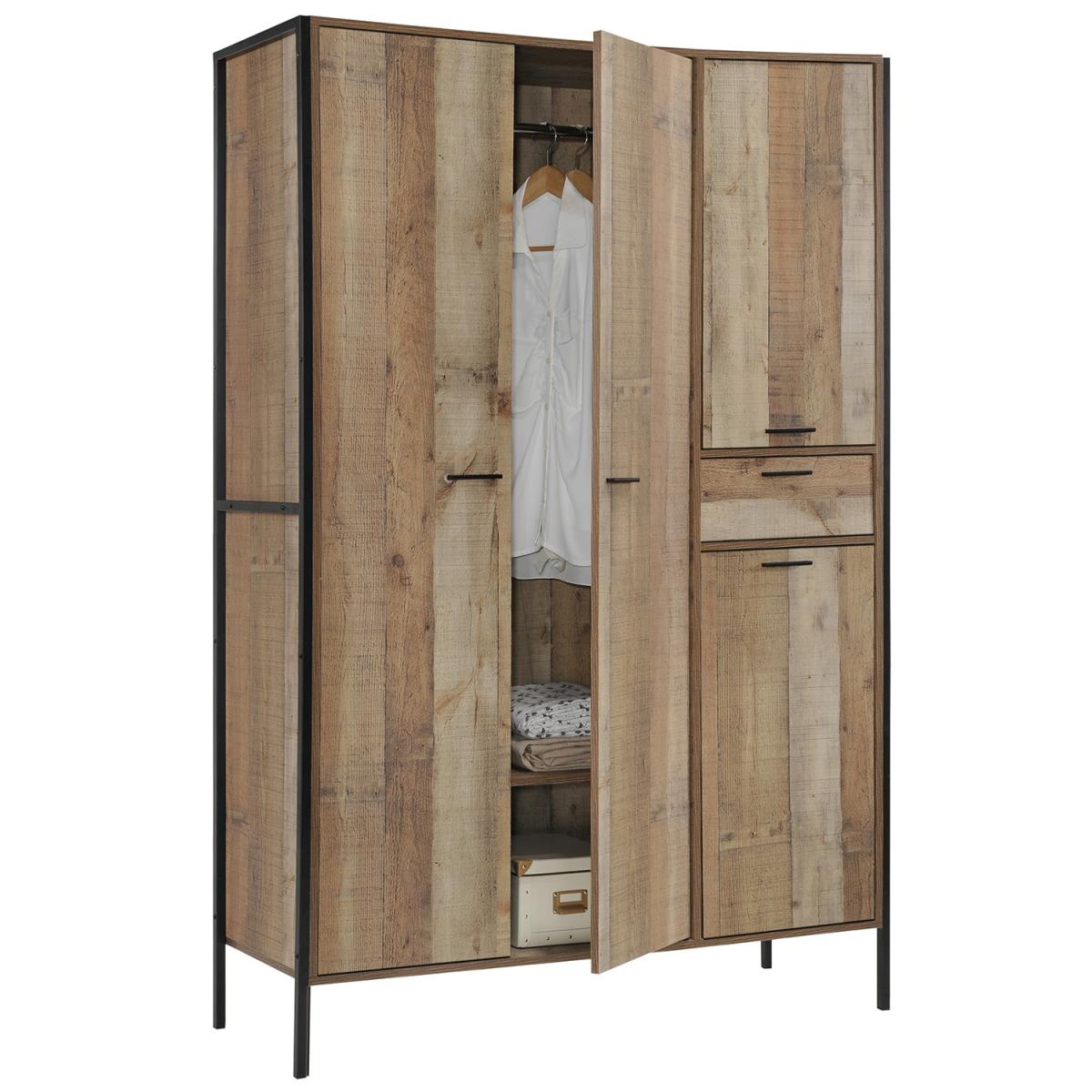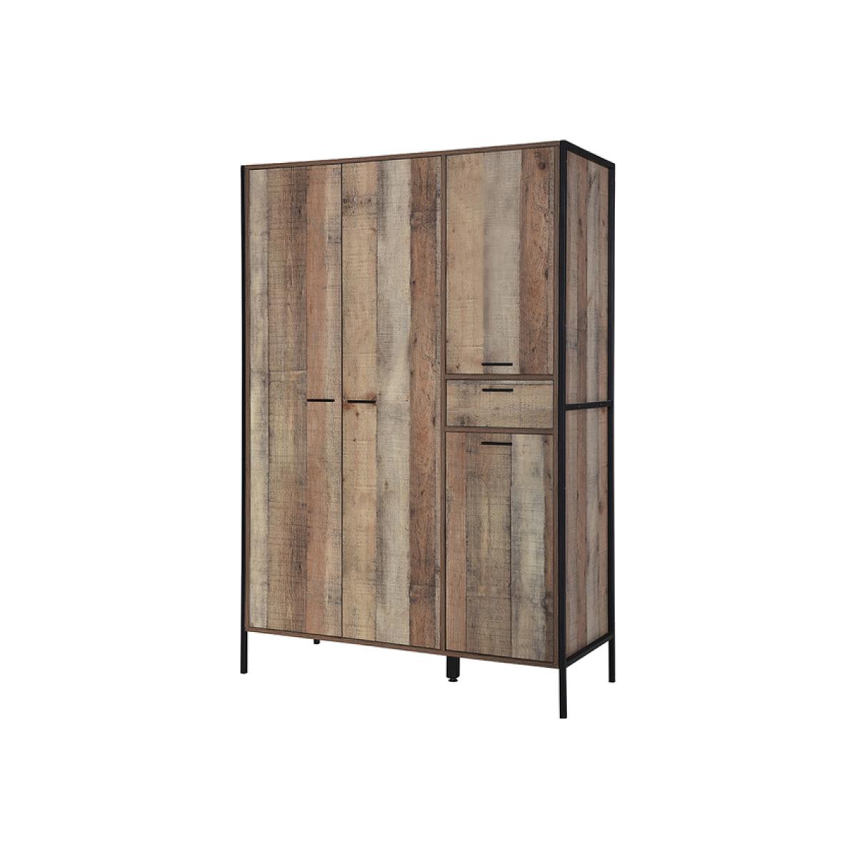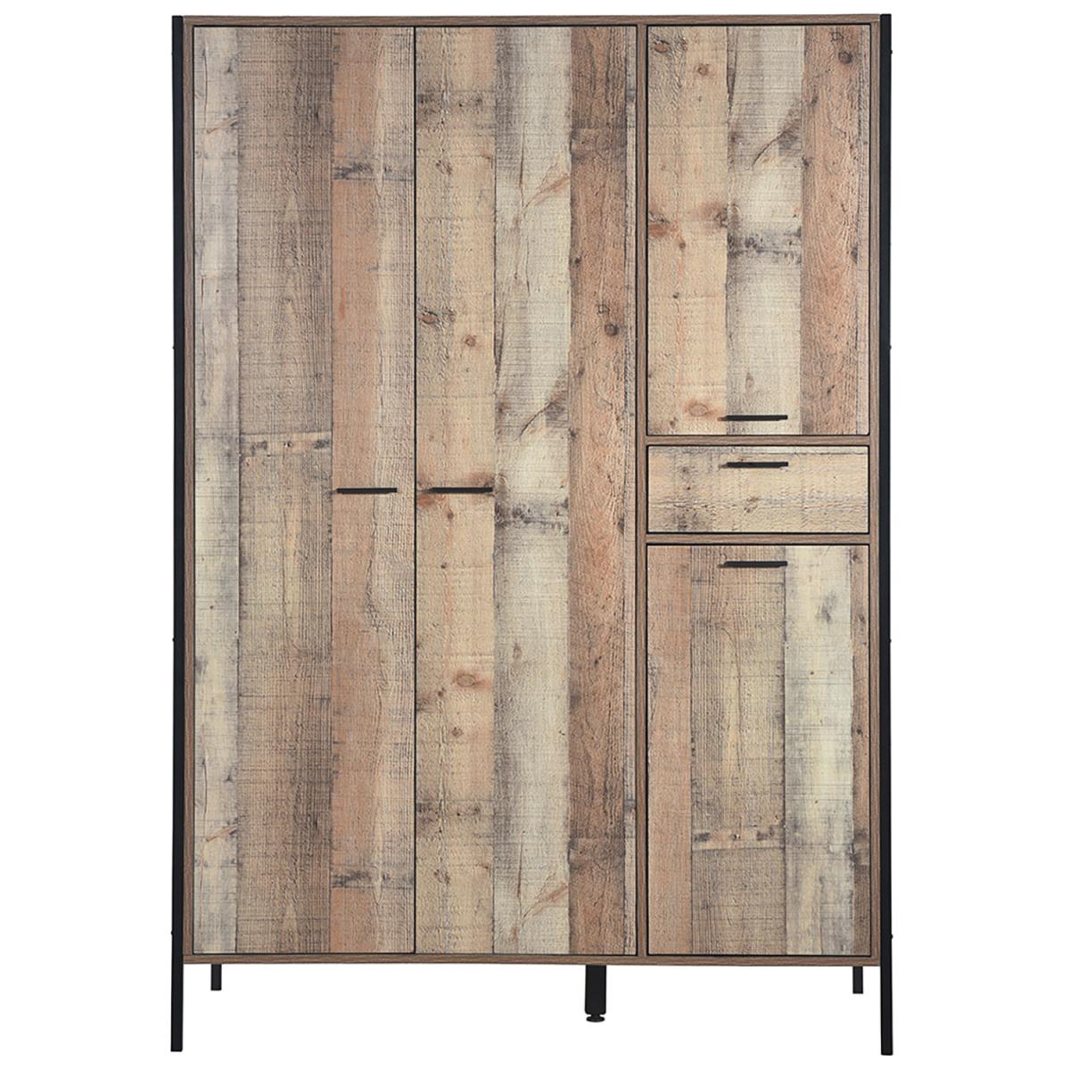 The Stretton Large 4 door wardrobe delivers a striking rustic industrial combination of distressed-look oak effect panels. A bedroom wardrobe designed to give your room a warm modern feel, the Large Stretton Wardrobe has a four doors and one drawer. This stunning wardrobe offers ample storage space for your clothes.