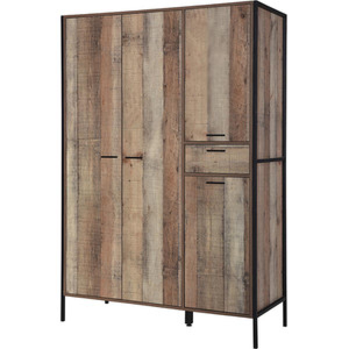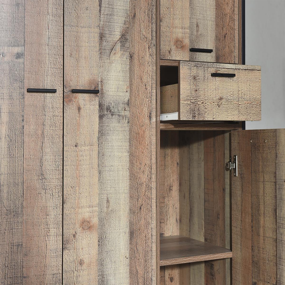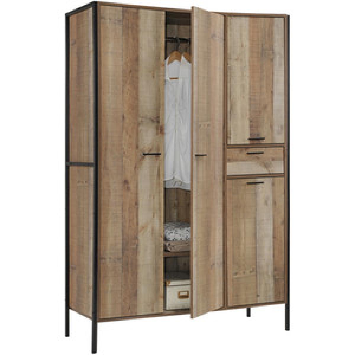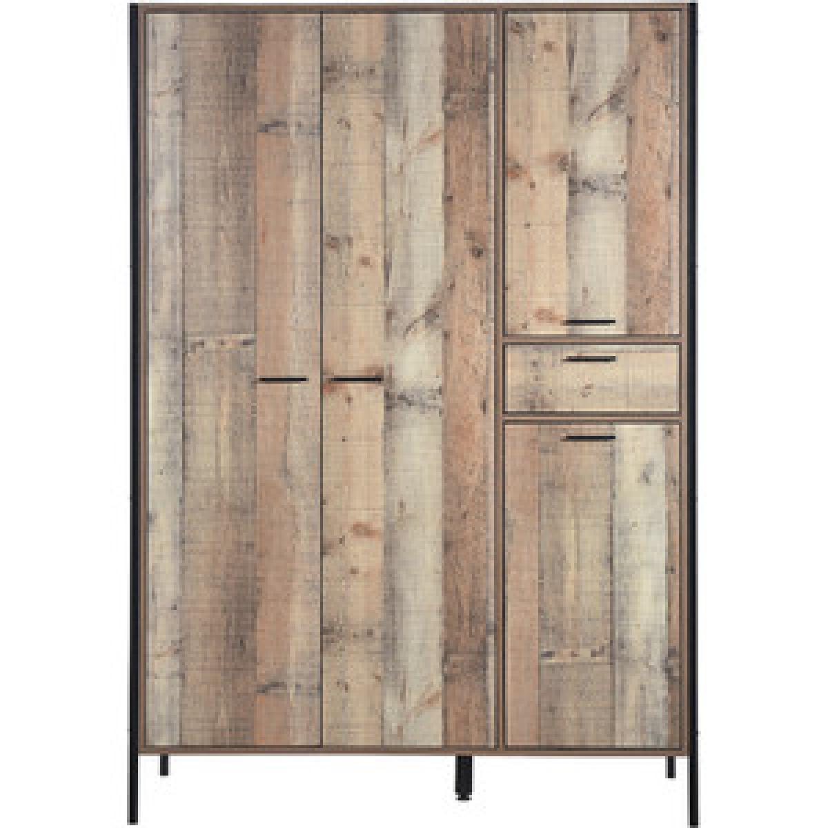 The Stretton Large 4 door wardrobe delivers a striking rustic industrial combination of distressed-look oak effect panels. A bedroom wardrobe designed to give your room a warm modern feel, the Large Stretton Wardrobe has a four doors and one drawer. This stunning wardrobe offers ample storage space for your clothes.