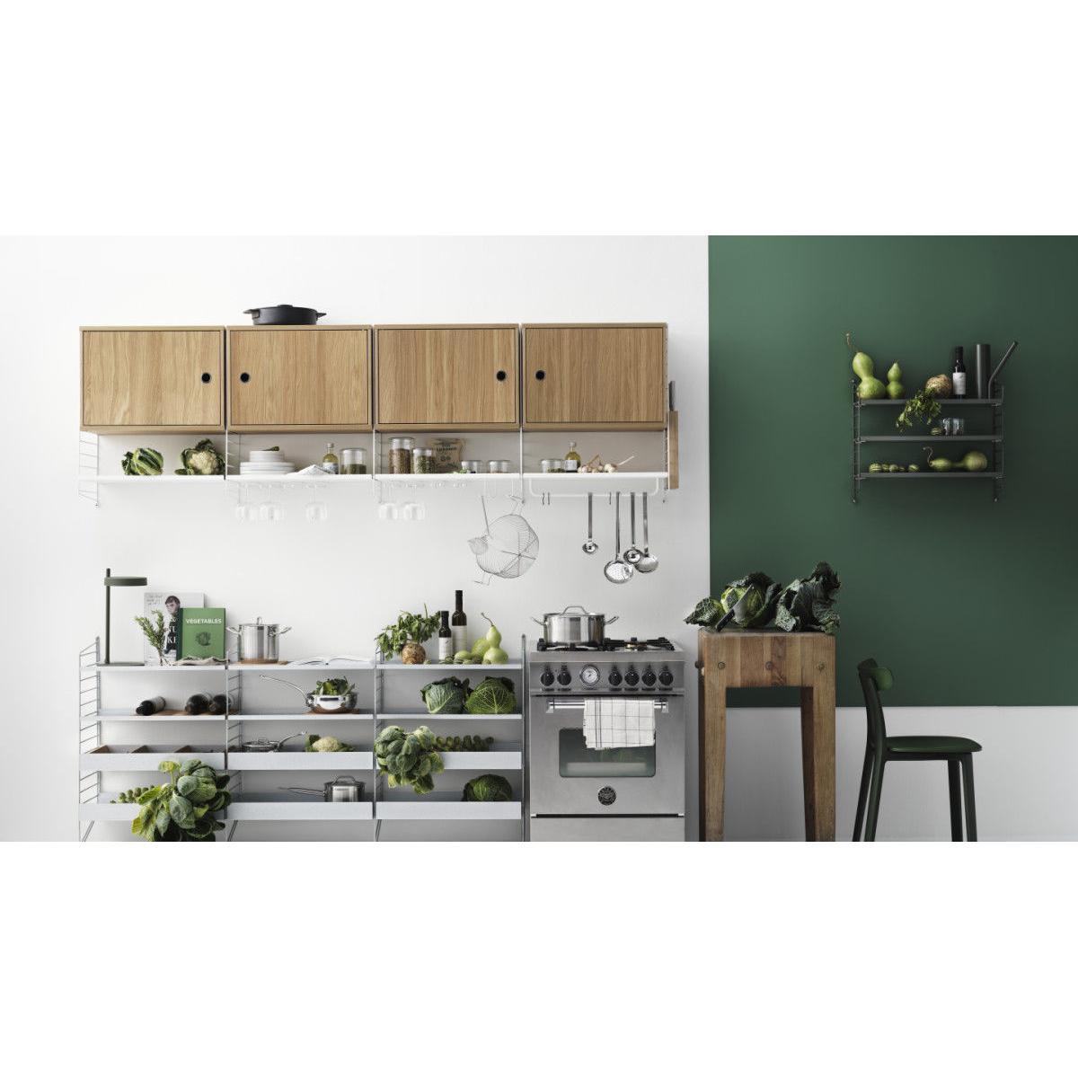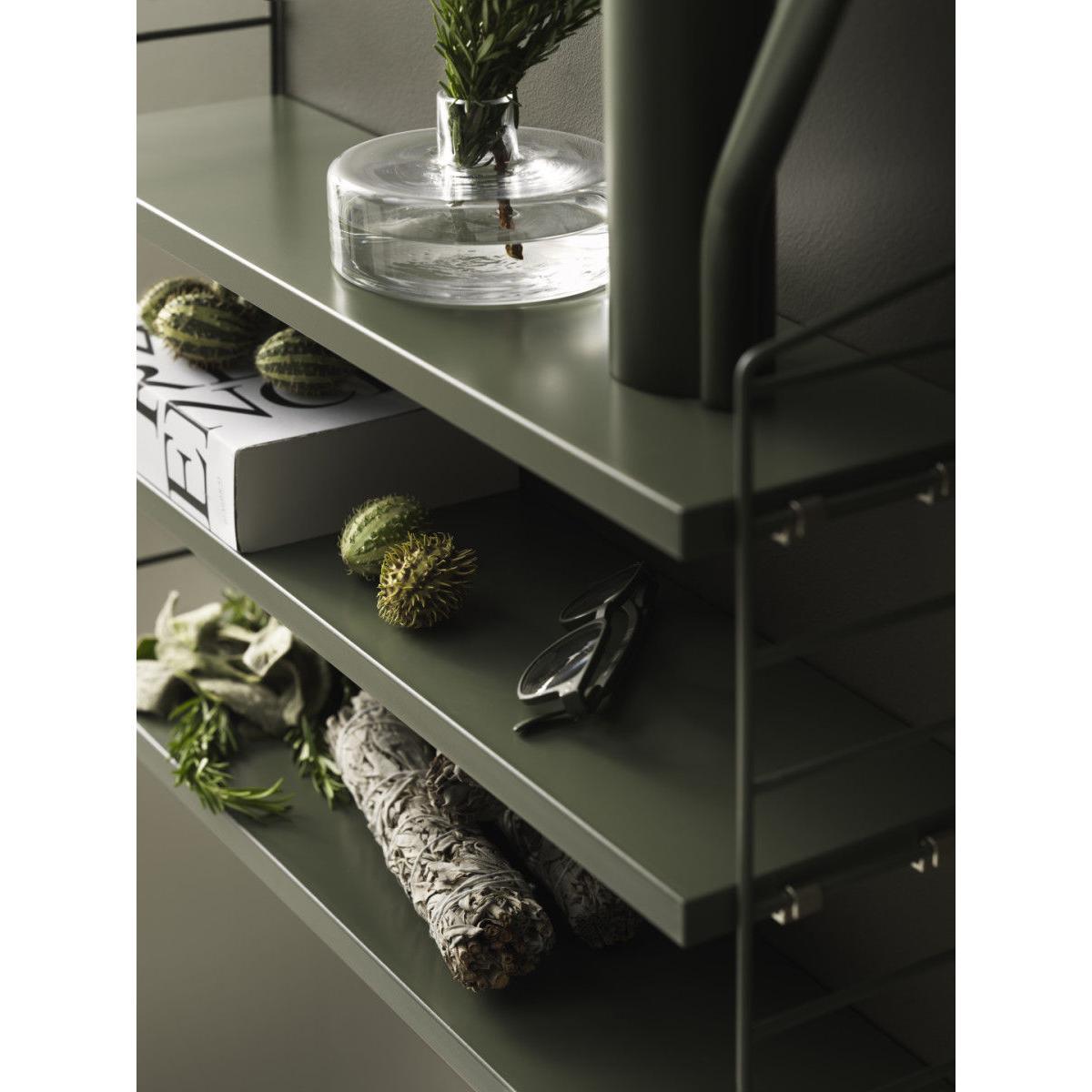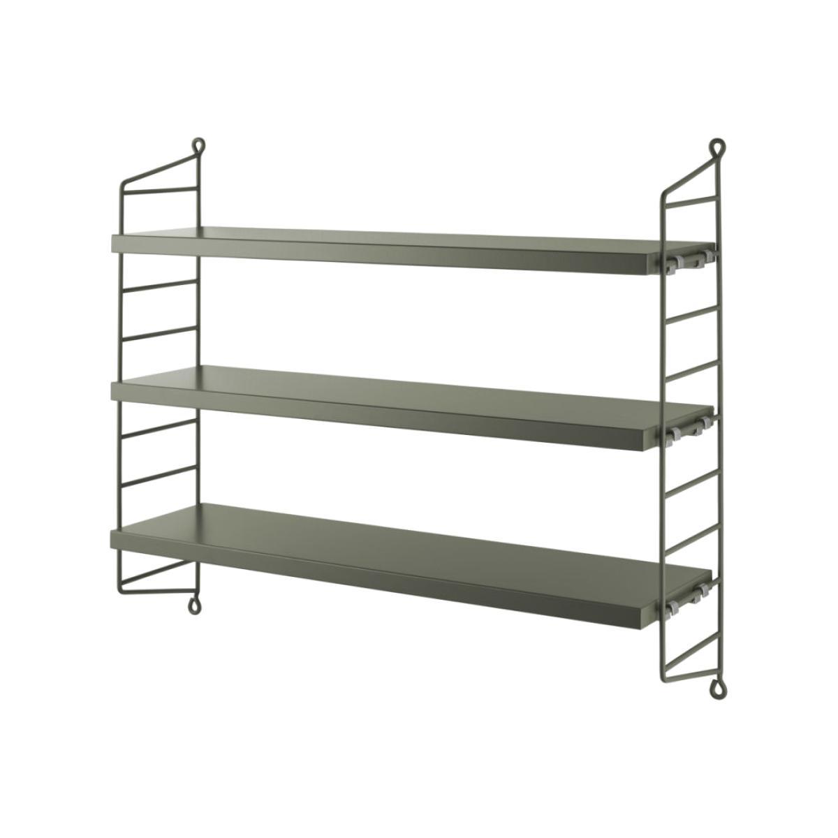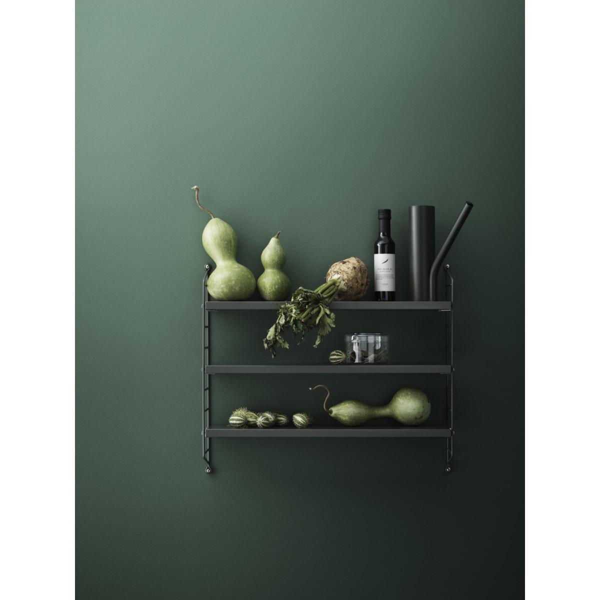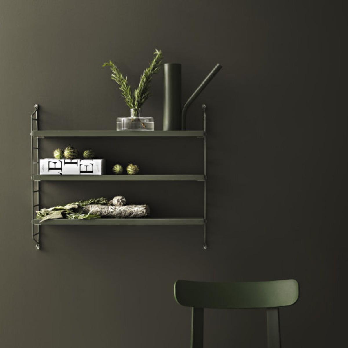 A Scandinavian design icon! The String shelving system was designed in 1949 by Swedish architect Nils Strinning (1917-2006), a leading figure in Scandinavian design. String is a system of modular shelves that can be combined depending on your needs. It is light, adaptable and offers a minimalist, timeless design, all of which have made it a Swedish design classic. The String shelf is still manufactured in Sweden in line with high quality standards. Its design has not changed since 1949. The String Pocket wall shelf can be fully disassembled. It consists of two brackets made of metal wire into which three height-adjustable shelves are fitted. Compact and convenient, you can position it anywhere, kitchens, entrances, bathrooms, bedrooms or living rooms. You can create a graphic composition on your wall by combining several String shelves side by side, vertically or horizontally. The wide range of colours, from bold and vibrant shades to pastel tones, means that String shelves can complement all interior styles. In this String® Pocket version, the three shelves are made using lacquered MDF.